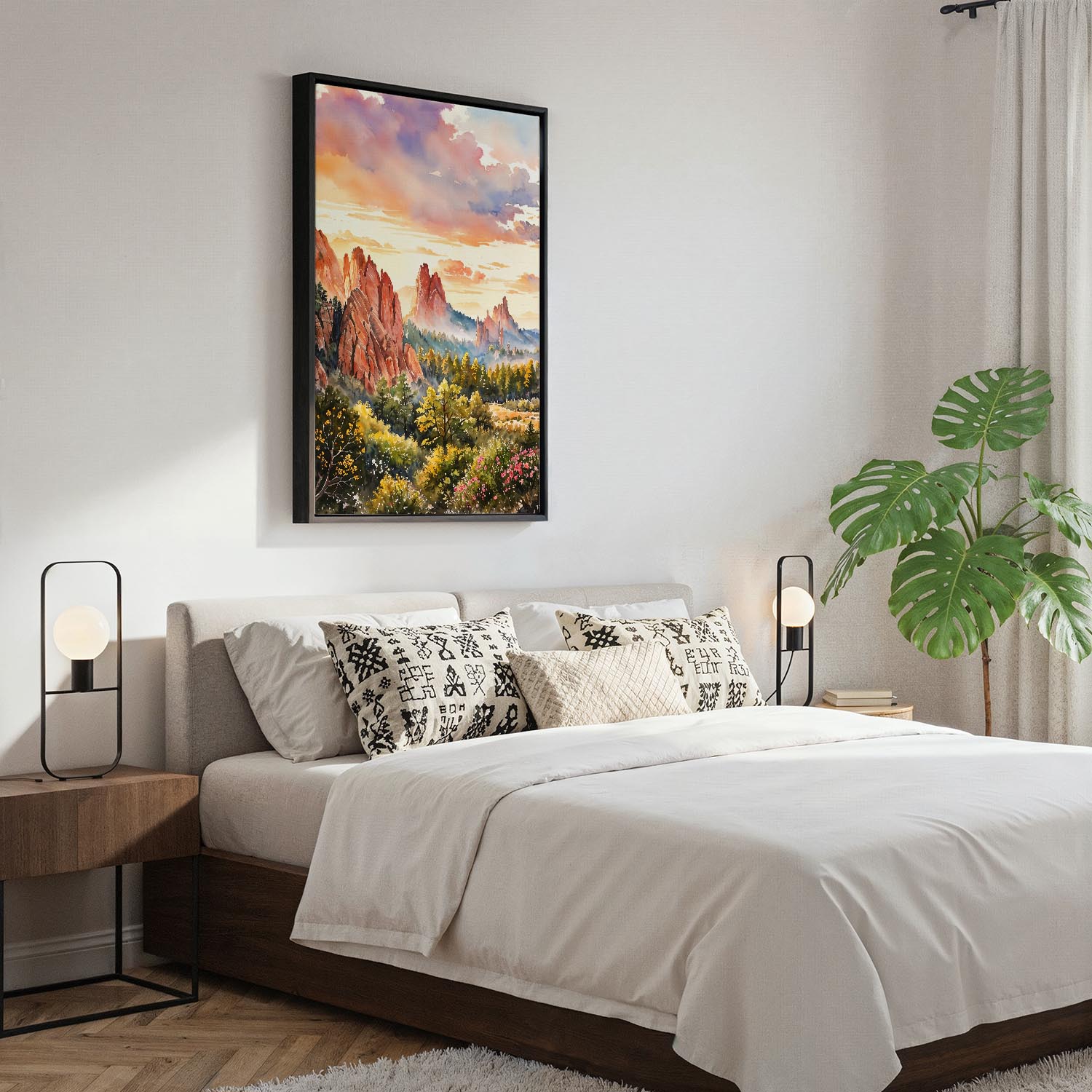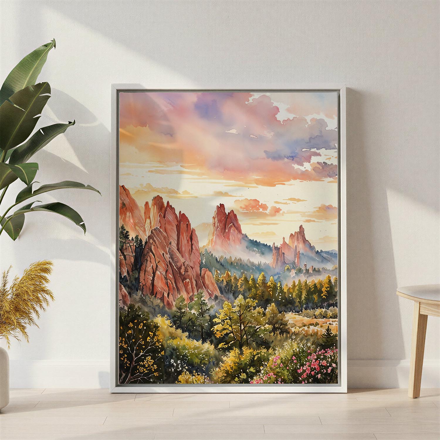 Colorado Springs Watercolor Canvas Print – Scenic Mountain Landscape Art