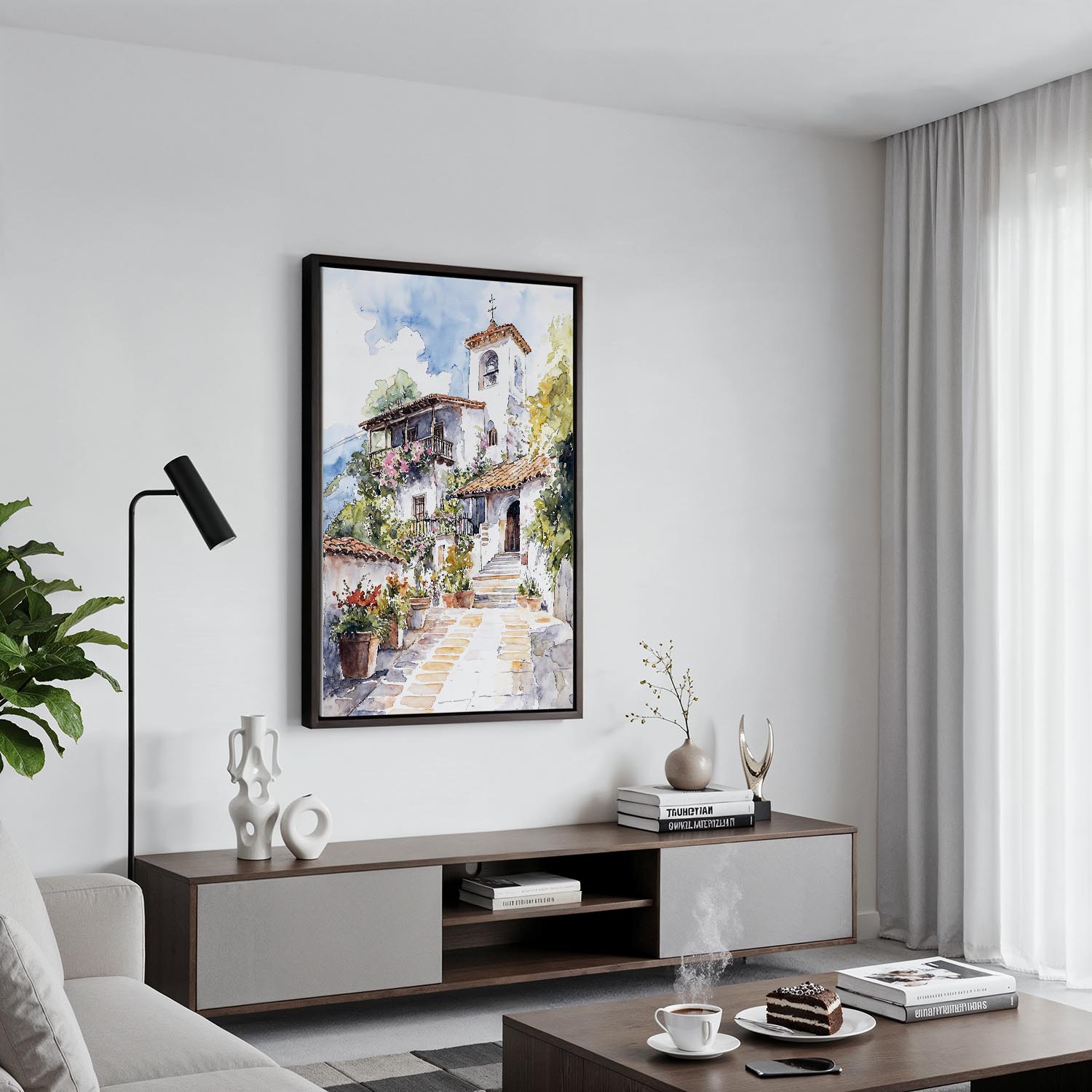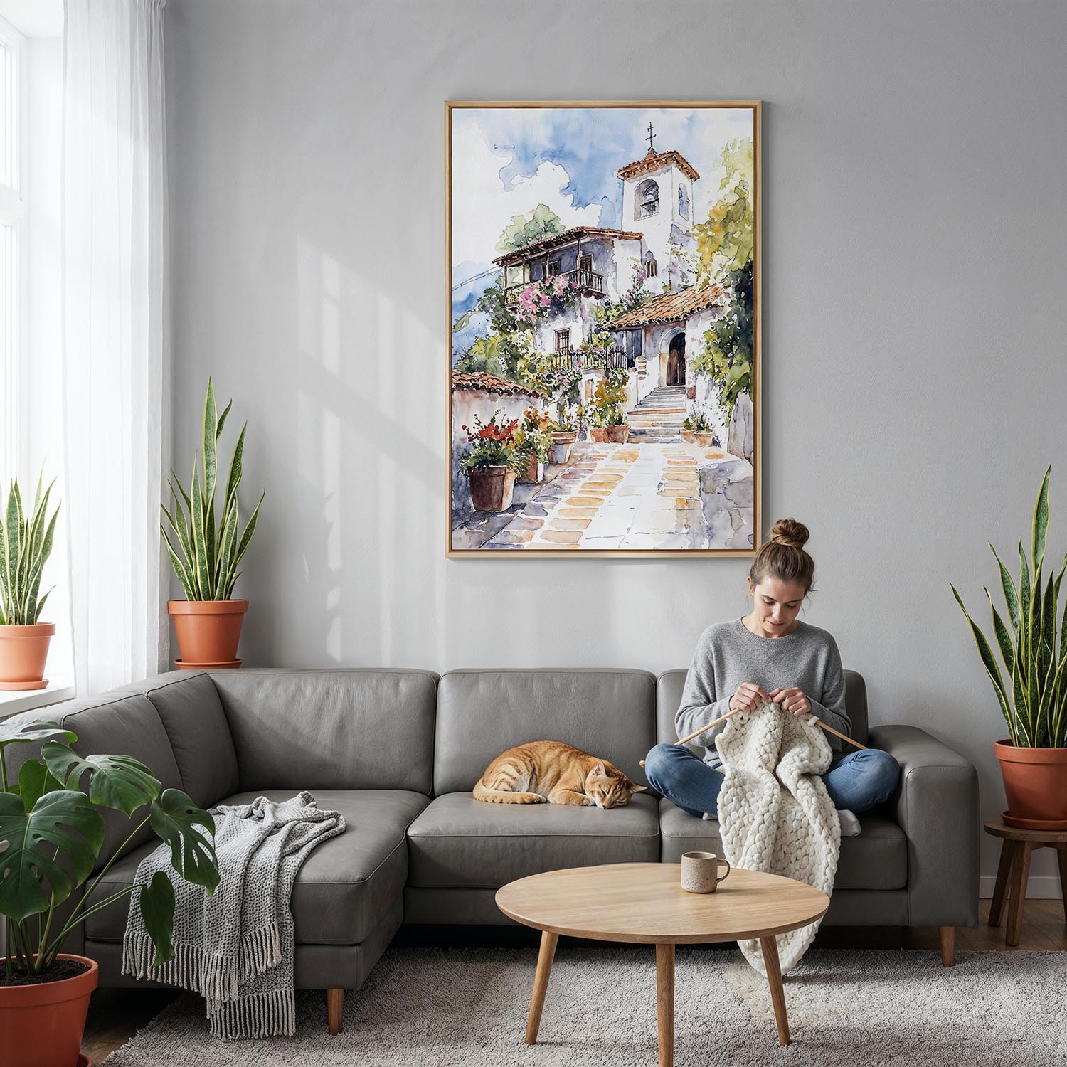 Transform your space with this charming watercolor canvas print of Cordoba, Spain. Perfect for any room, this ready-to-hang piece brings Mediterranean beauty to your home.