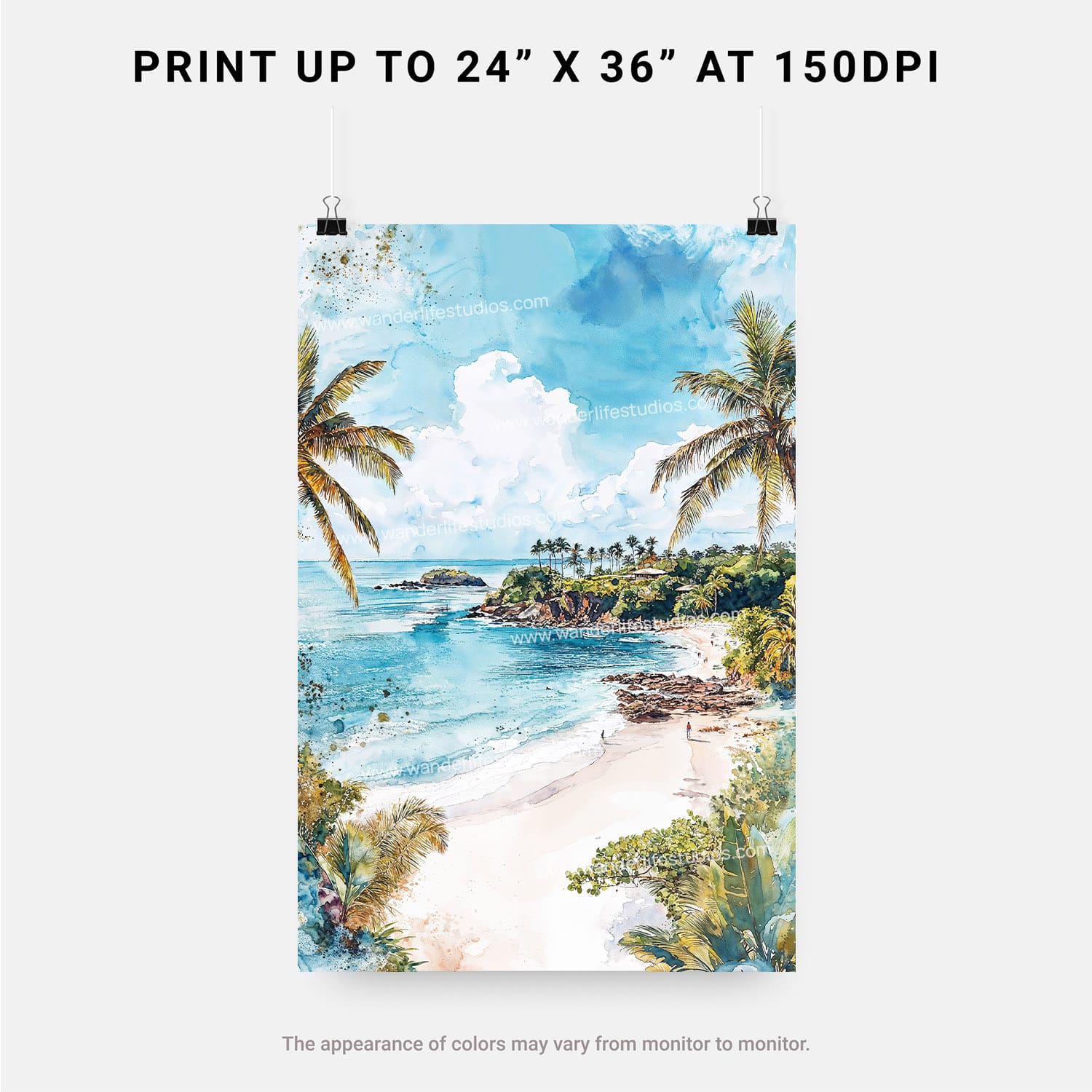 Costa Rica Playa Ventana Watercolor Print – Digital Download Wall Art