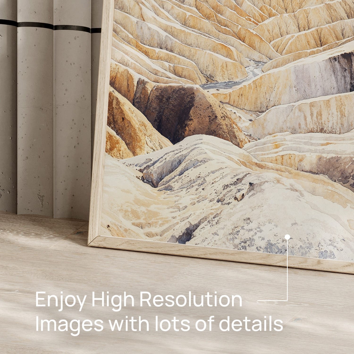 This stunning artwork captures the unique landscape of Death Valley, showcasing its textured hills and soft earth tones. Ideal for creating a tranquil atmosphere in your living room, bedroom, or office, it evokes a sense of adventure and exploration. Delivered as a high-resolution JPG file, this digital download is easy to print at home or through your local print shop. Enjoy the flexibility of instant access to enhance your decor or gift it to someone special.
