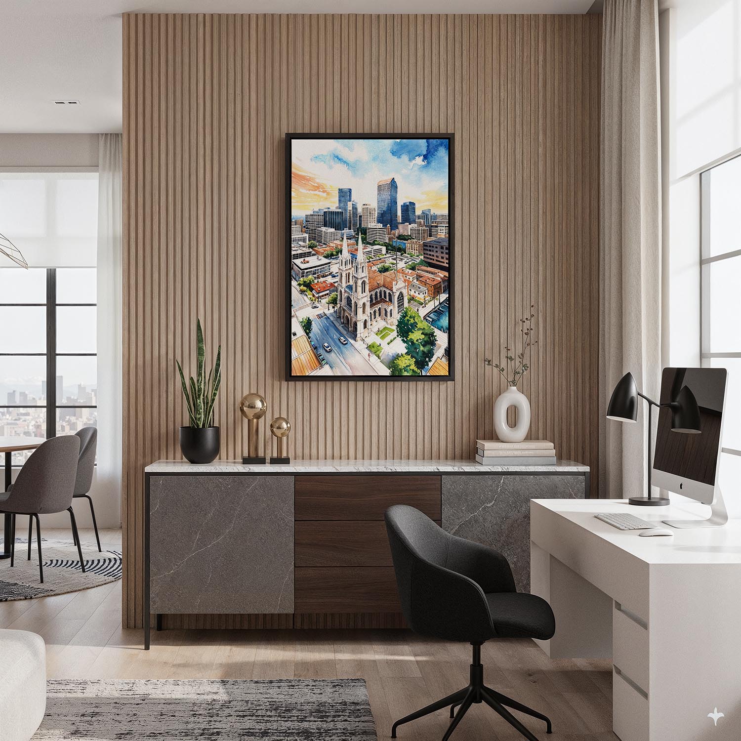 Denver Colorado Skyline Canvas Print – Watercolor Cityscape Wall Art