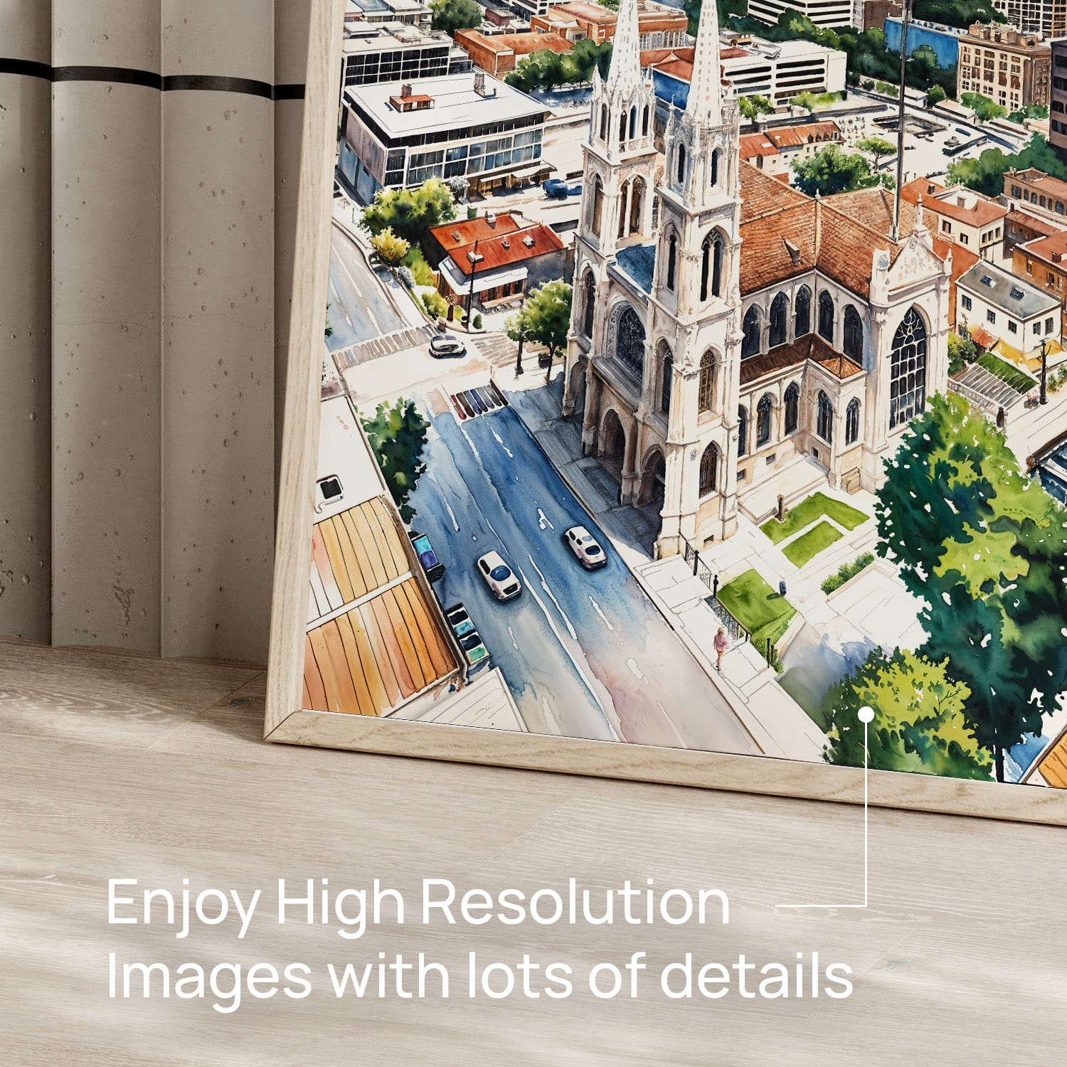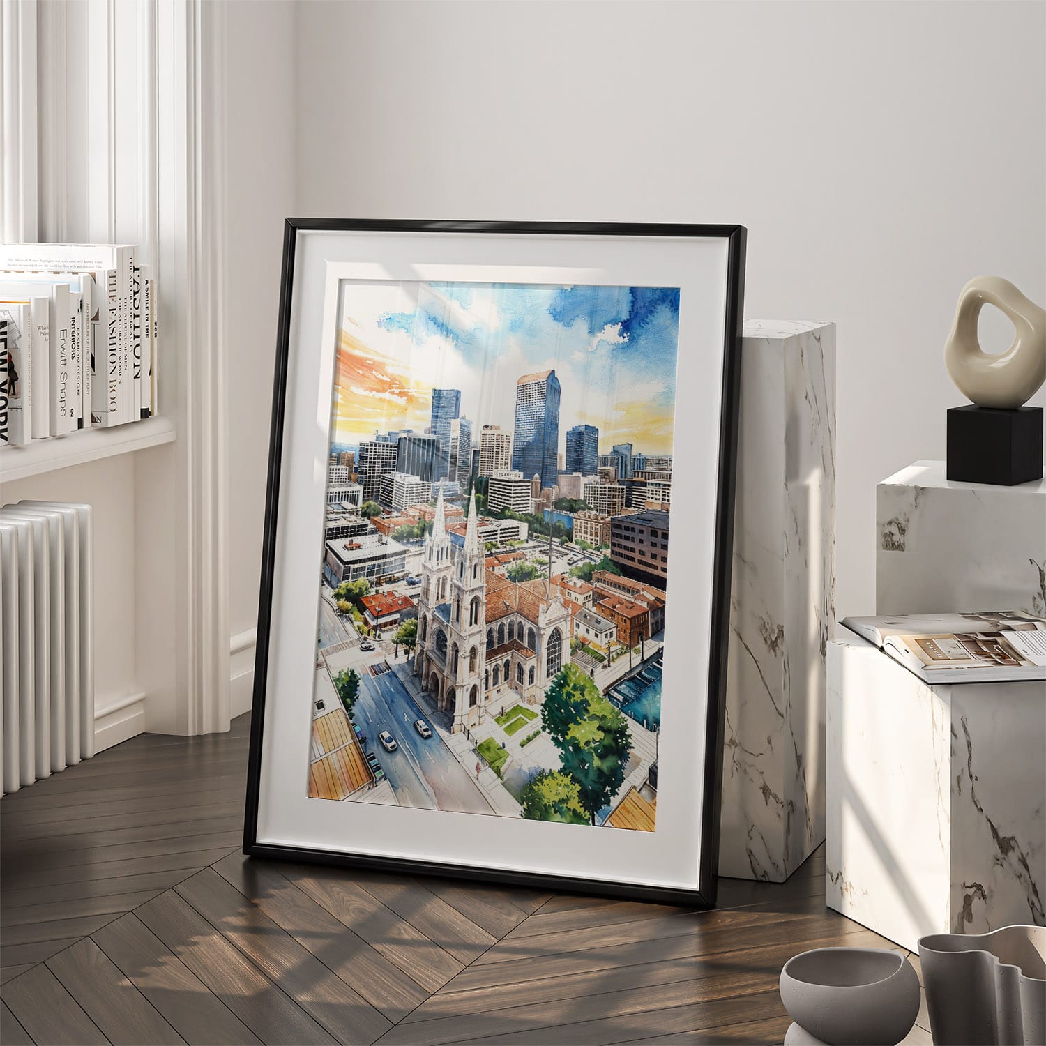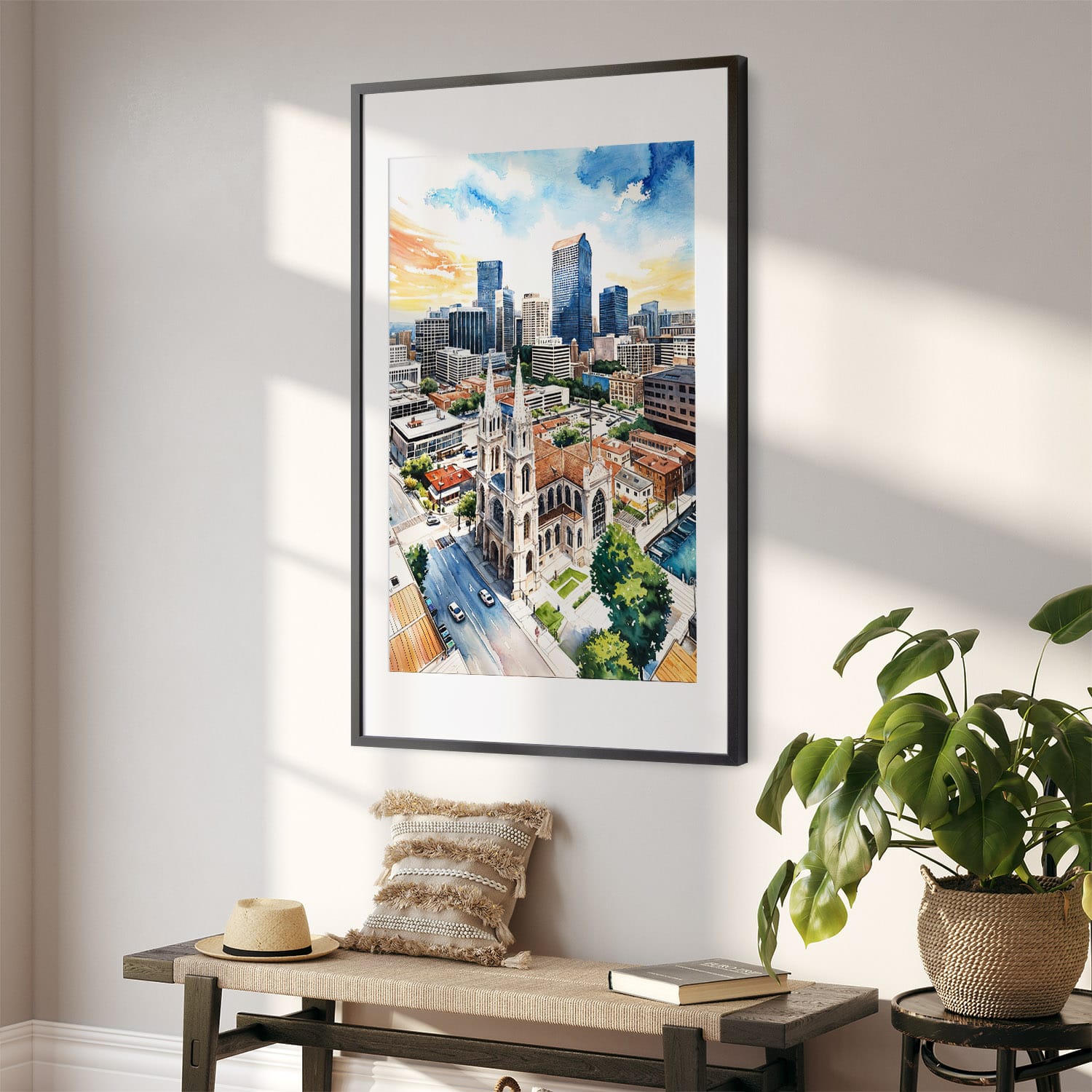 This Denver skyline digital download wall art captures the vibrant city life in a watercolor style. Instantly accessible, it’s perfect for printing at home or at your local print shop to bring a piece of the Mile High City into your space.
