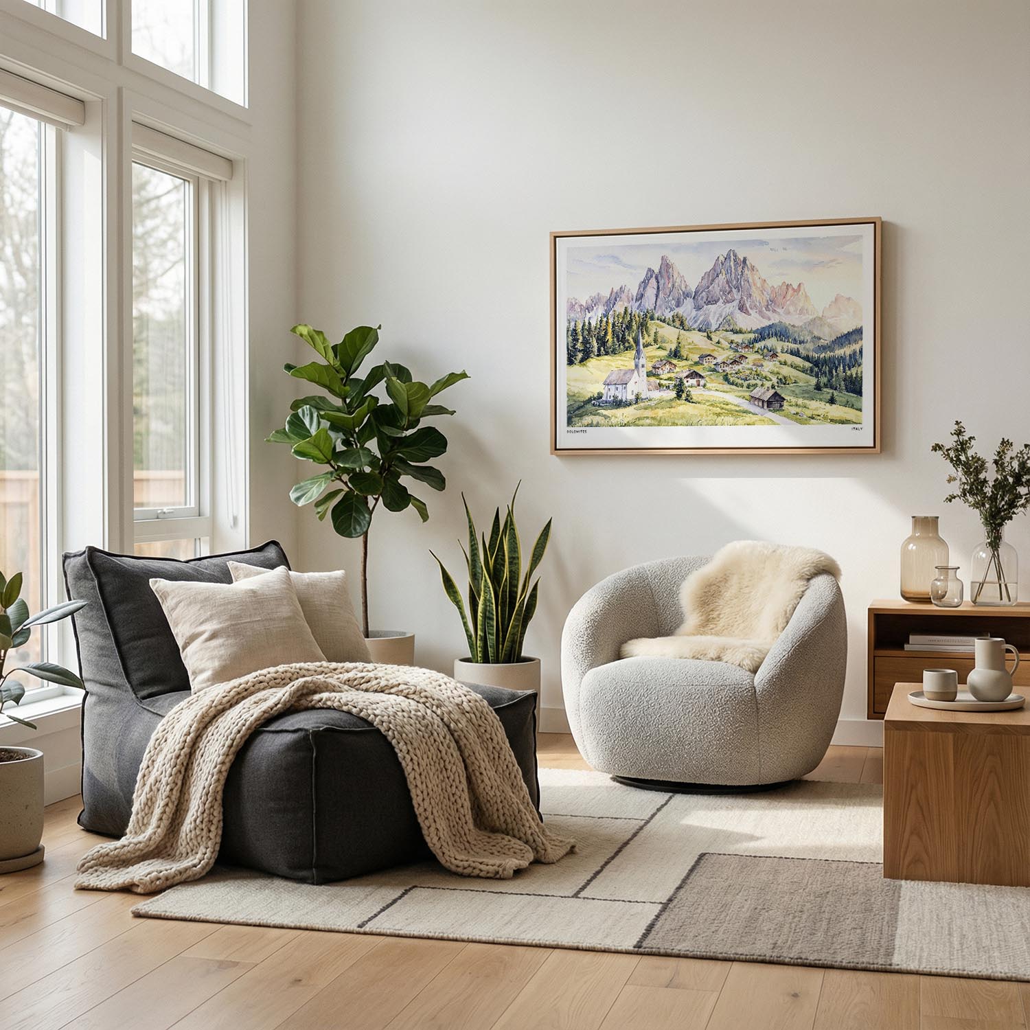 Transform your space with this watercolor canvas print of the Dolomites. Featuring serene mountain peaks and quaint villages, it’s ready to hang in your living room, bedroom, or office.