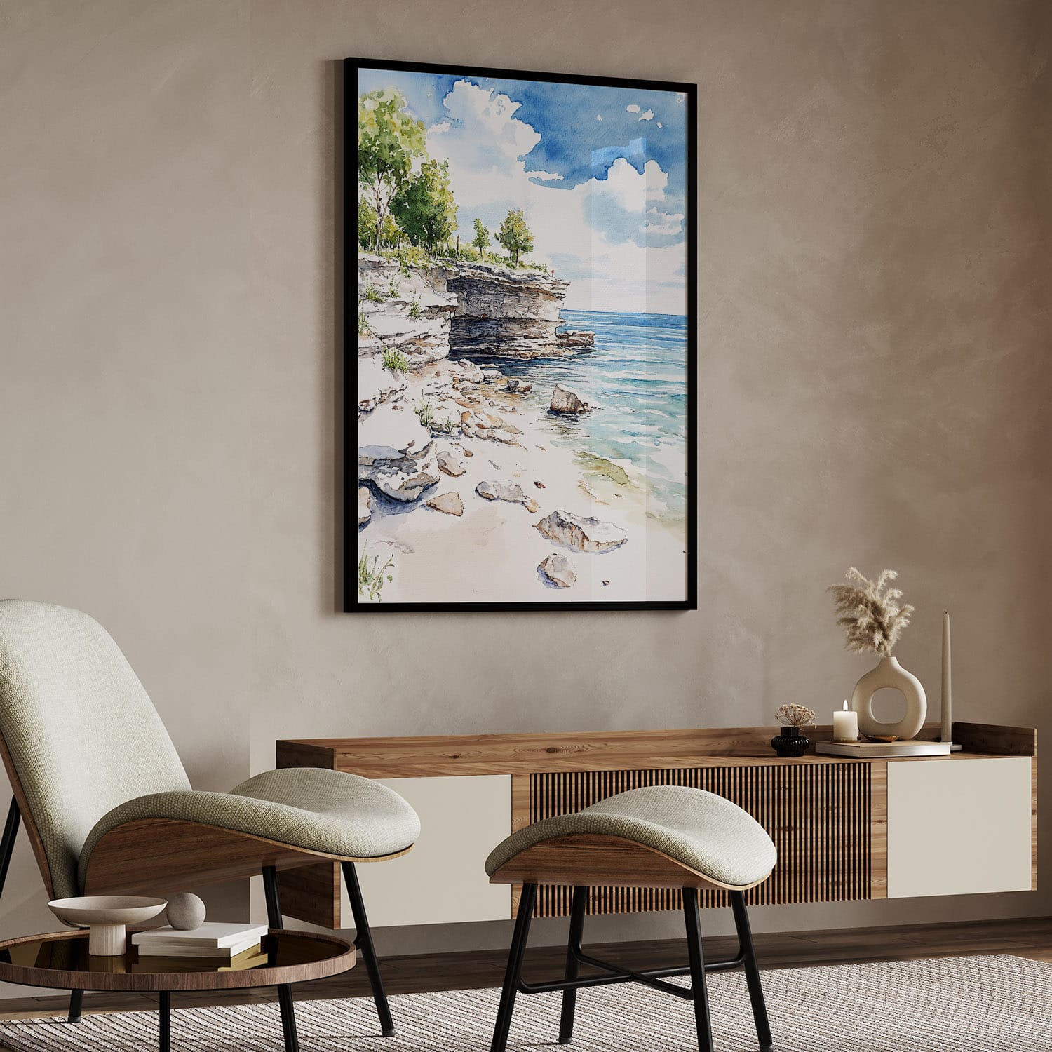 Immerse yourself in the beauty of Door County with this captivating watercolor art piece. It showcases a tranquil shoreline, perfect for evoking memories of peaceful summer days by the water. This high-resolution digital file makes it simple to print at home or through a local print shop, fitting seamlessly into living rooms, bedrooms, or offices. Enjoy the instant access and flexibility to refresh your decor effortlessly.