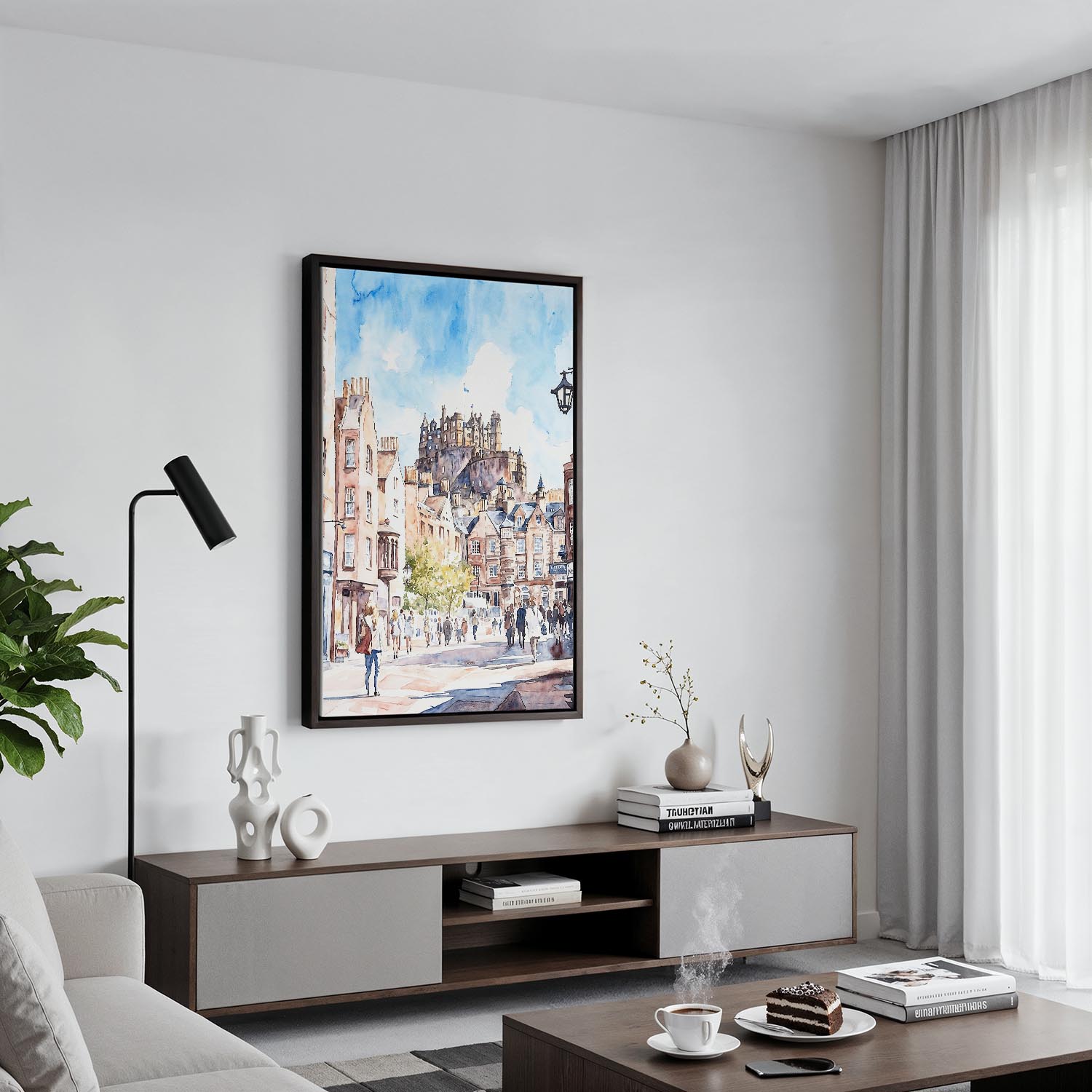 Bring the charm of Edinburgh to your walls with this canvas print. Featuring the iconic castle above bustling streets, it’s ready to hang and perfect for any living room or office.