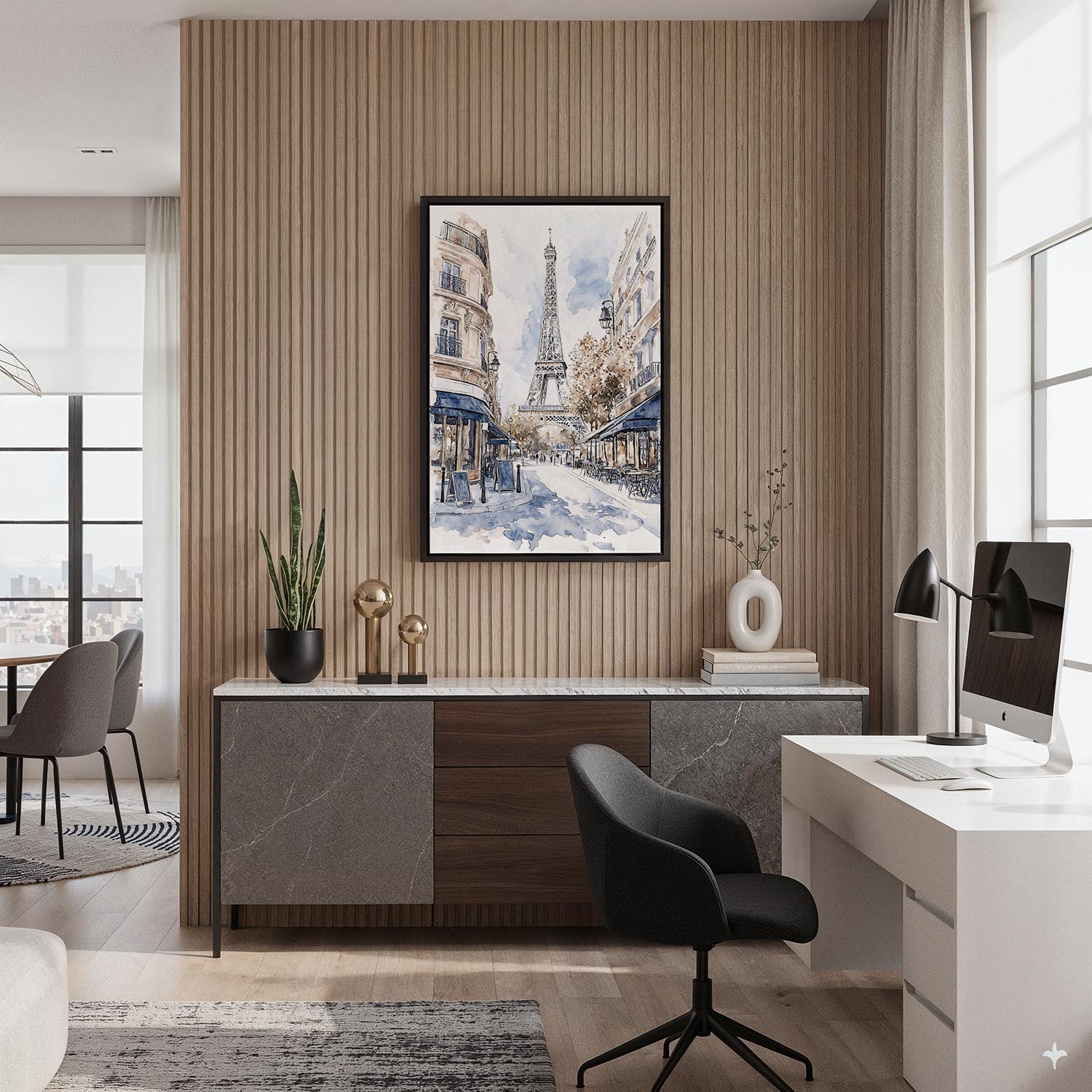 Bring the charm of Paris into your home with this canvas print featuring the Eiffel Tower. Perfect for living rooms or offices, it’s ready to hang and adds a touch of elegance.