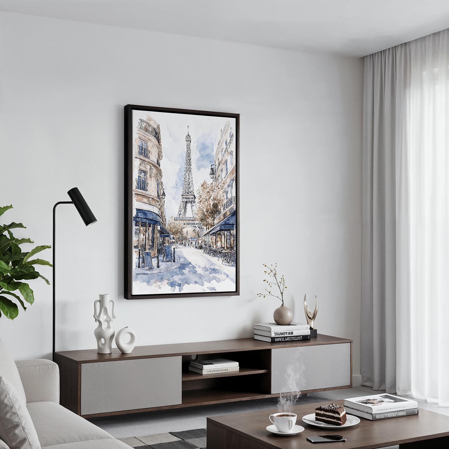 Eiffel Tower Watercolor Canvas Print – Paris Street Scene Wall Art