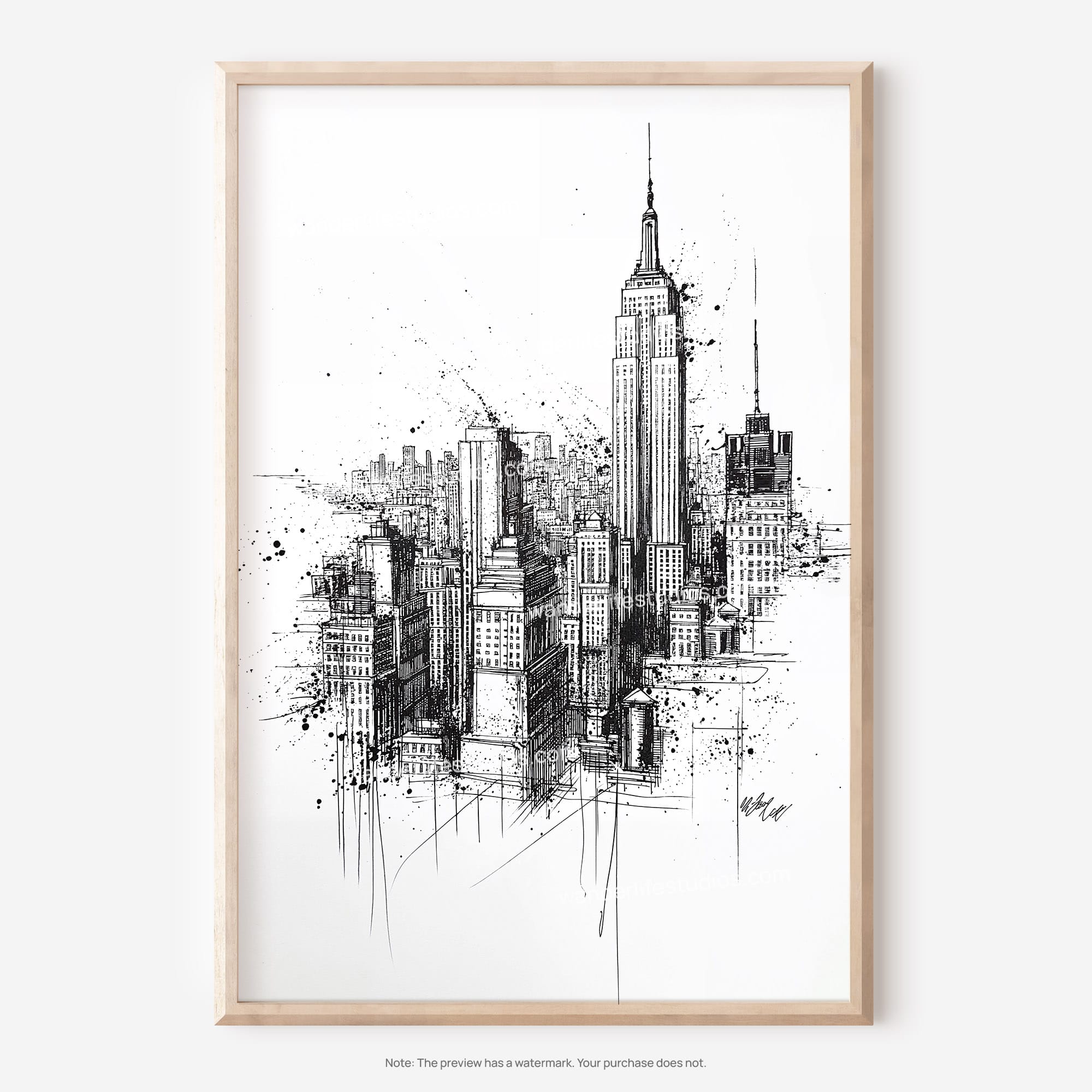 This artwork highlights the iconic Empire State Building, presented in a detailed pencil drawing style. It adds a modern and sophisticated touch to your decor, ideal for living rooms, bedrooms, or home offices. As a high-resolution digital file, you can print it easily at home or through a local print shop. Instant access allows you to enjoy this piece without delay, making it a wonderful addition to your space or a thoughtful gift for fellow city lovers.