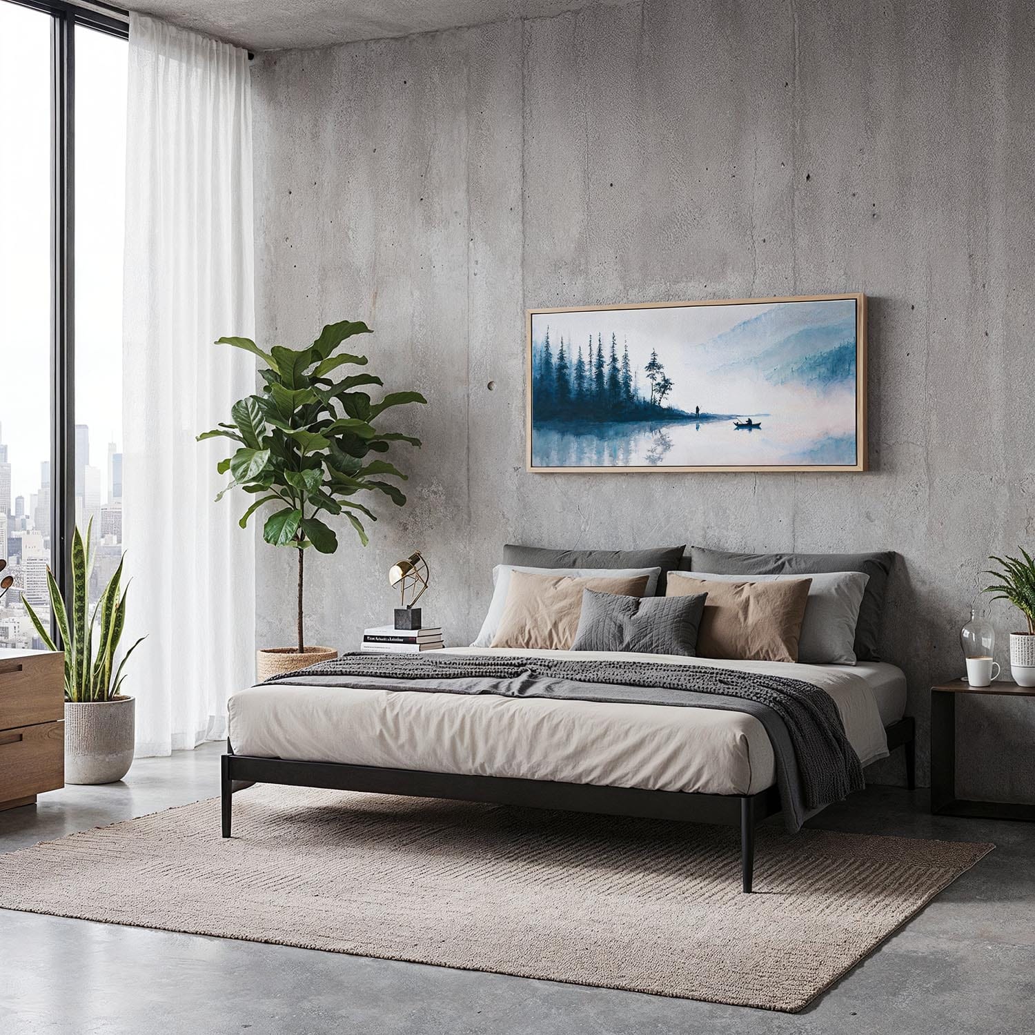 This artwork invites you into a peaceful fishing scene at dawn, with soft reflections on water and gentle silhouettes of pine trees. The panoramic 2:1 format expansively transforms your wall, enhancing the sense of openness in any room. Crafted in the USA, this premium canvas features hand-stretched edges, fade-resistant inks, and a matte finish, ready to hang with sturdy solid wood stretcher bars. Ideal for over sofas or along hallways, it makes a lovely gift or a cherished piece for personal enjoyment.