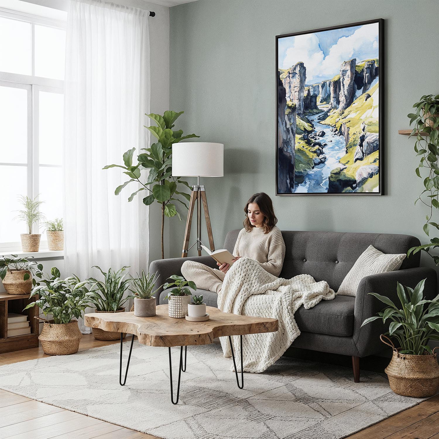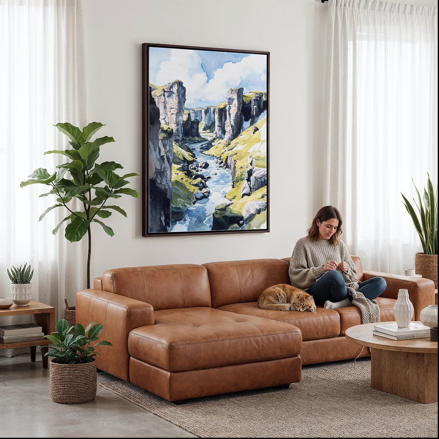 Fjadrargljufur Canyon Watercolor Canvas Print – Iceland Landscape Wall Art