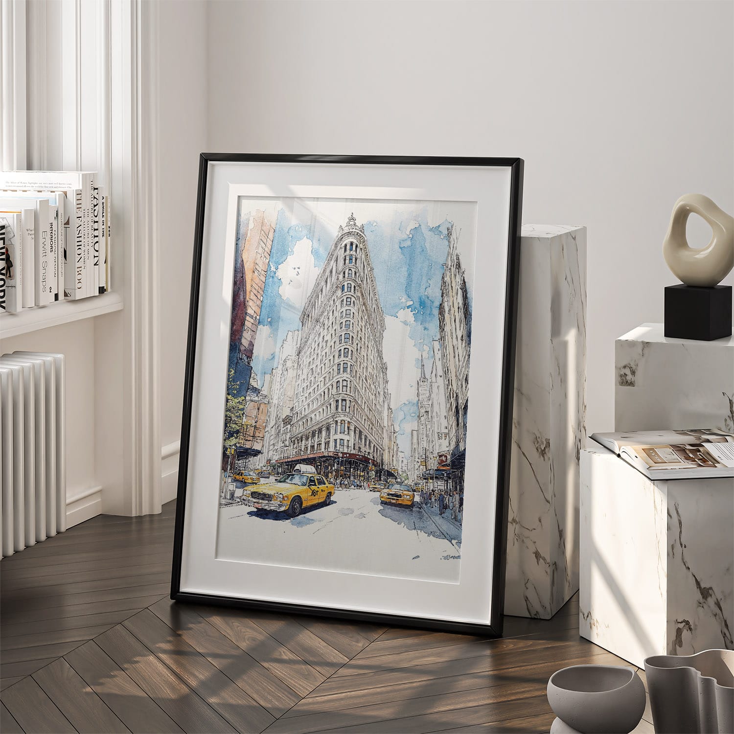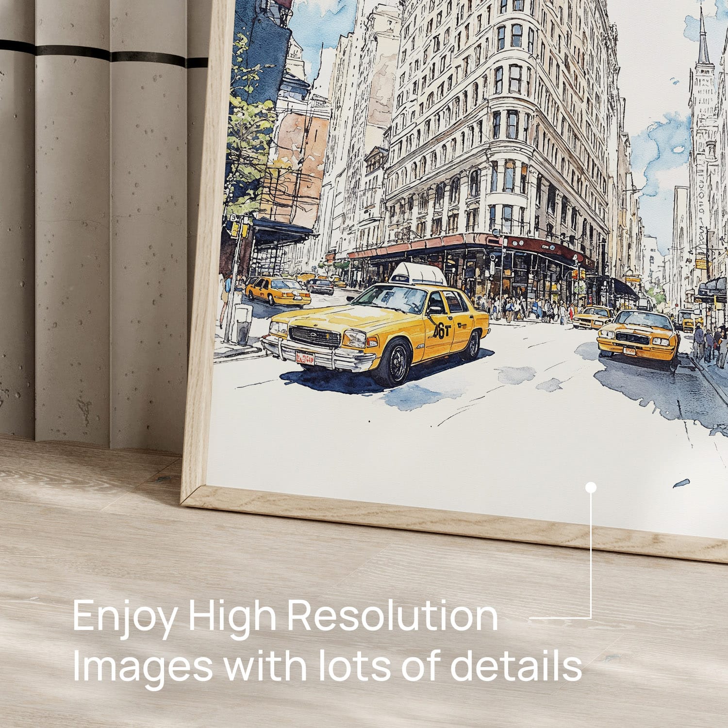 This artwork beautifully captures New York City’s iconic Flatiron Building, framed by lively city life and soft blue skies. The piece adds a touch of urban flair to your space, evoking memories of city adventures. Delivered as a high-resolution digital file, it’s easy to print at home or through a local print shop. Perfect for living rooms, offices, or as a gift for city lovers. Enjoy instant access and transform your wall decor with this captivating scene.
