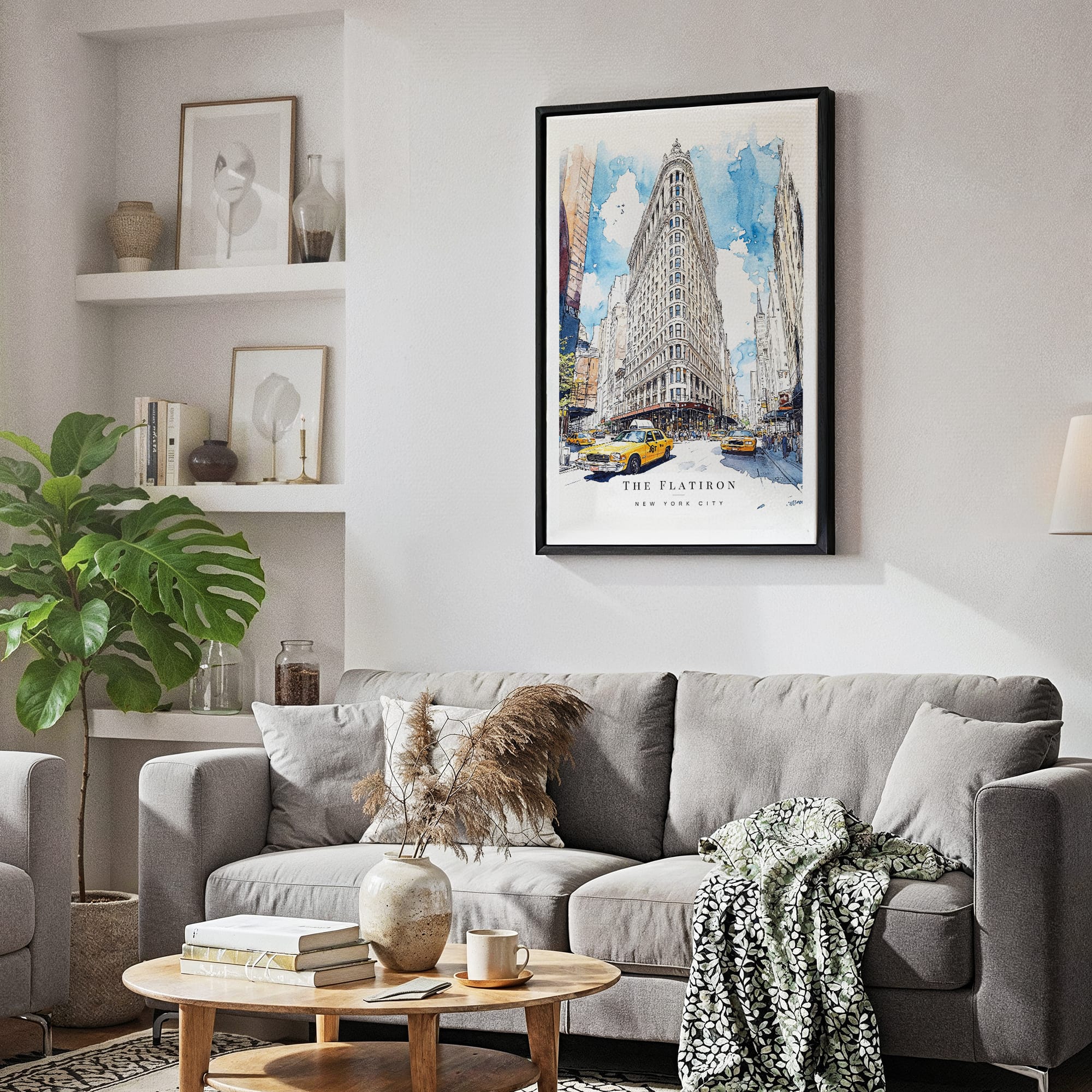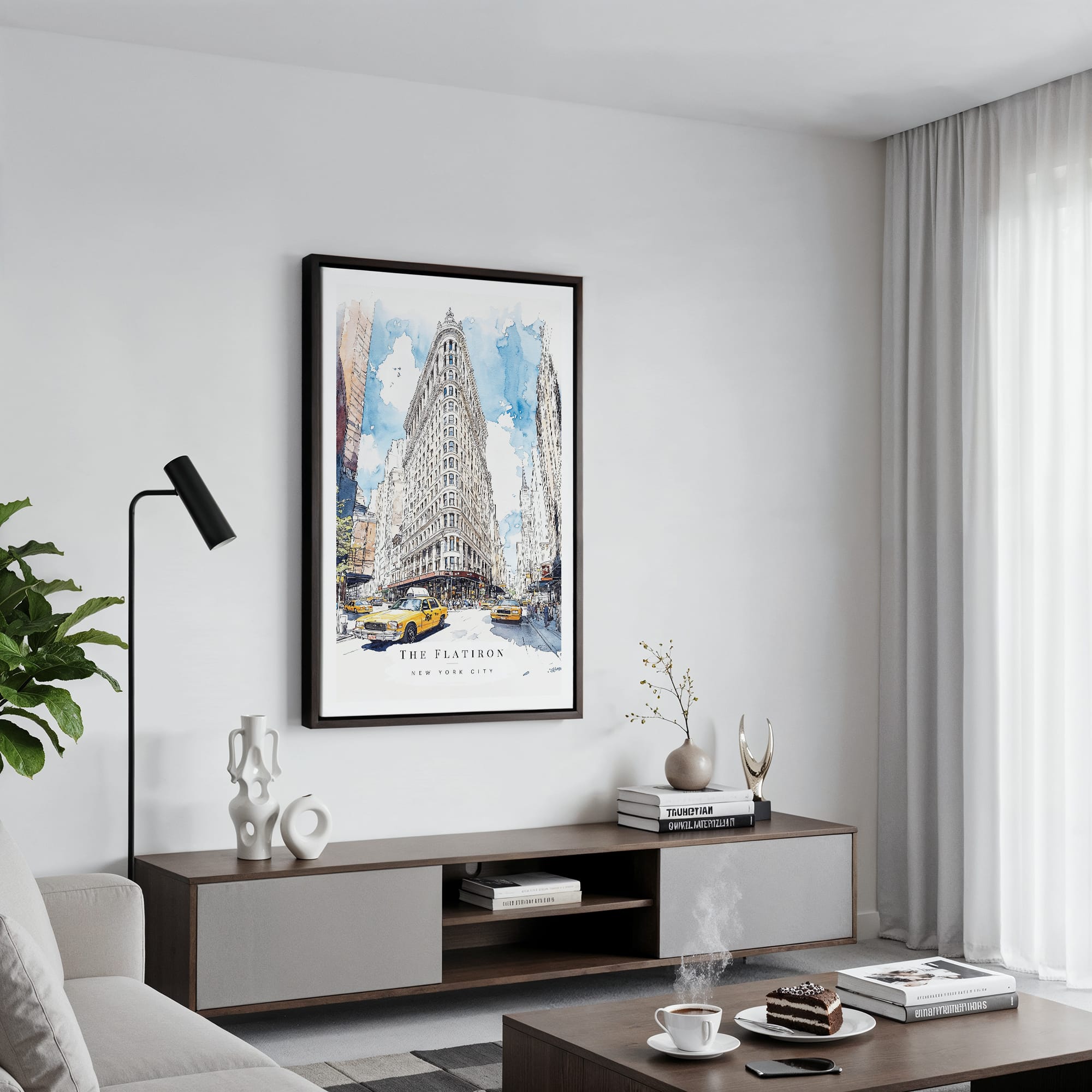 Flatiron Building Watercolor Canvas Print – Iconic New York City Wall Art