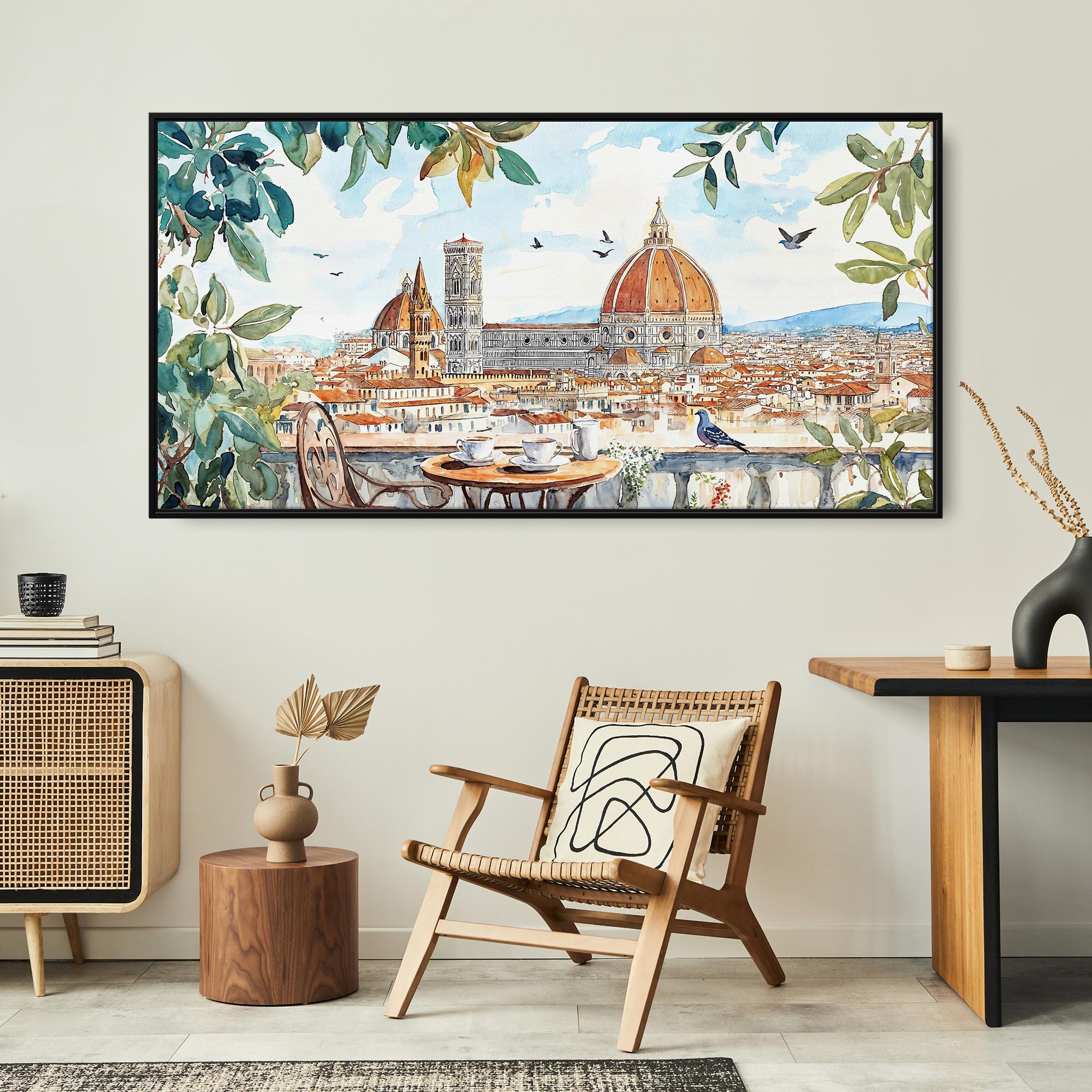Elevate your space with this Florence panorama canvas print, showcasing the iconic Duomo and charming rooftops. Its wide format creates a captivating focal point, making it perfect for living rooms or office spaces.