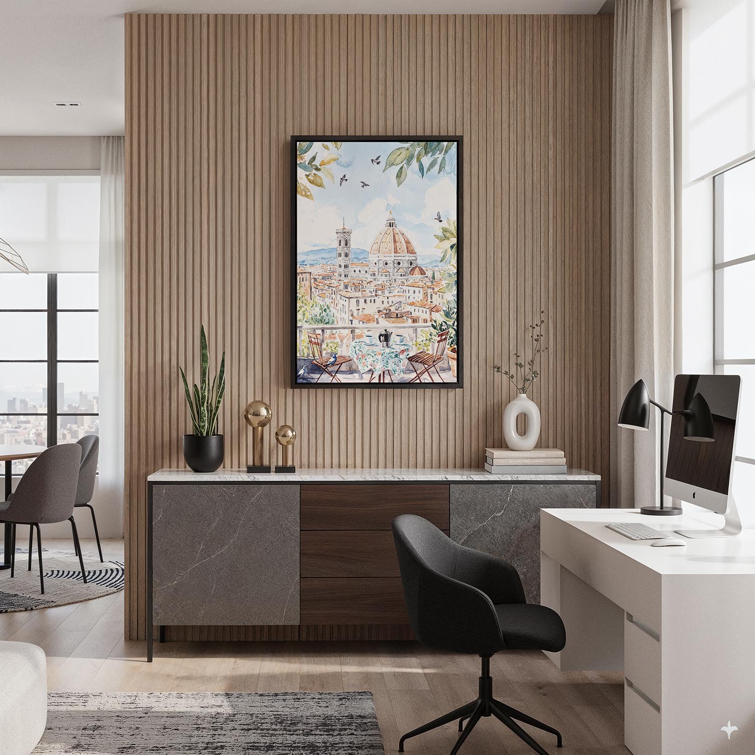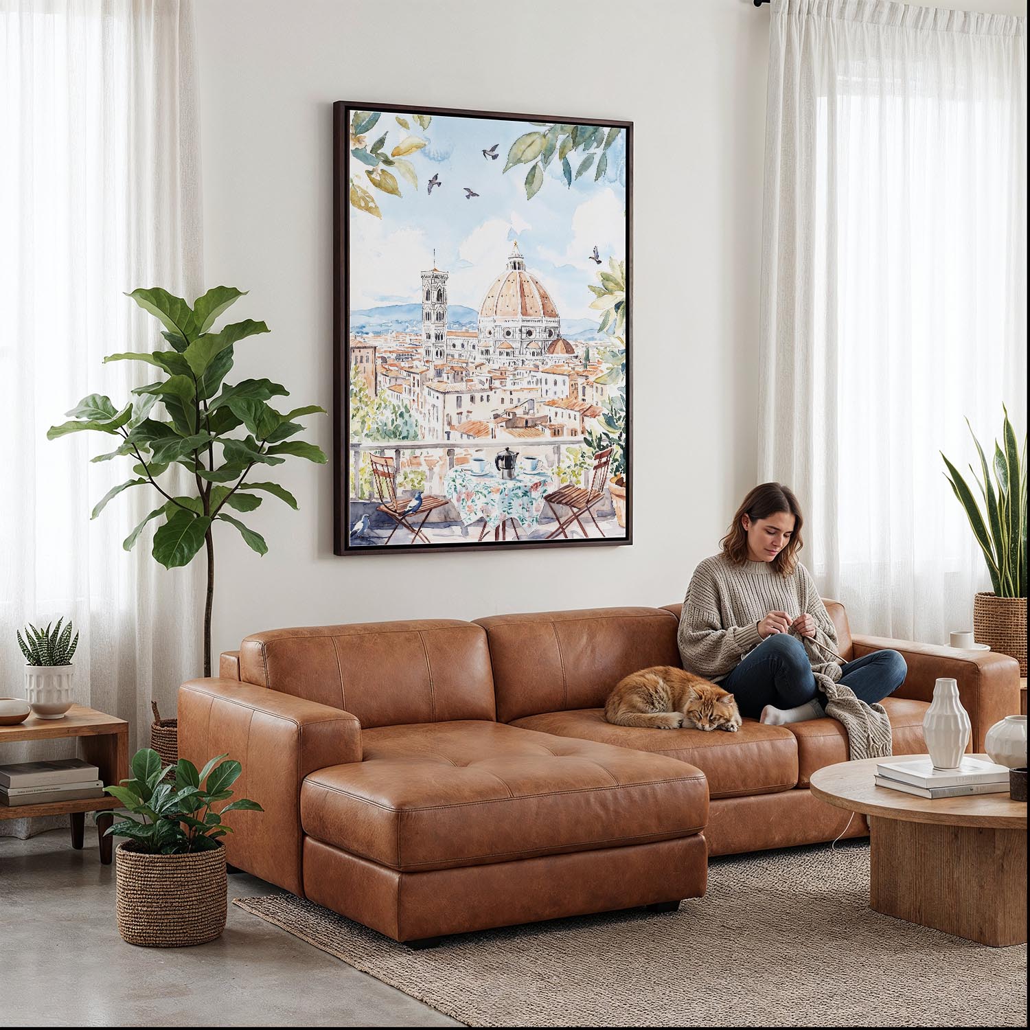 Transform your space with this Florence canvas print, featuring a cozy morning coffee scene against the city’s iconic skyline. It’s an inviting piece, perfect for your living room, bedroom, or home office.