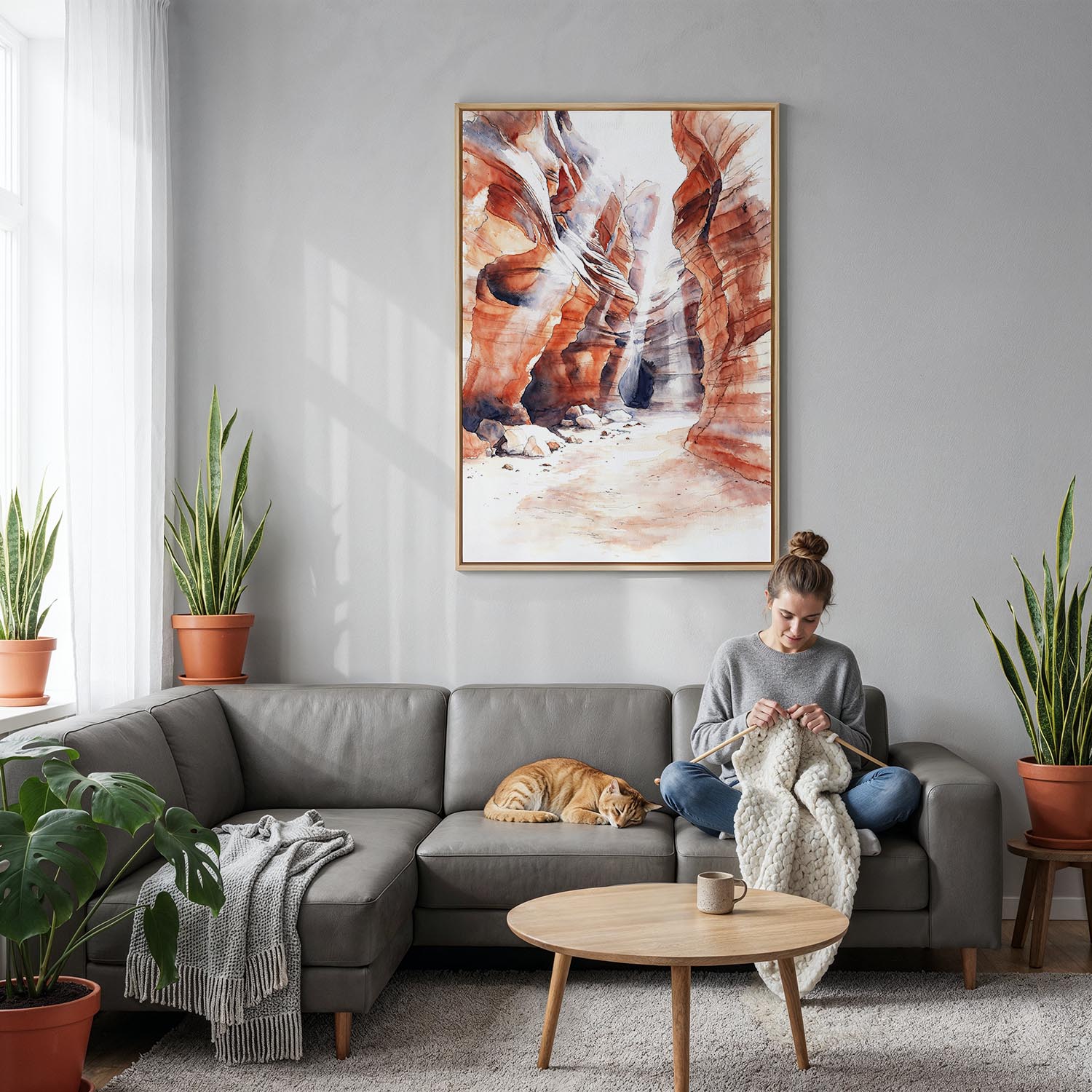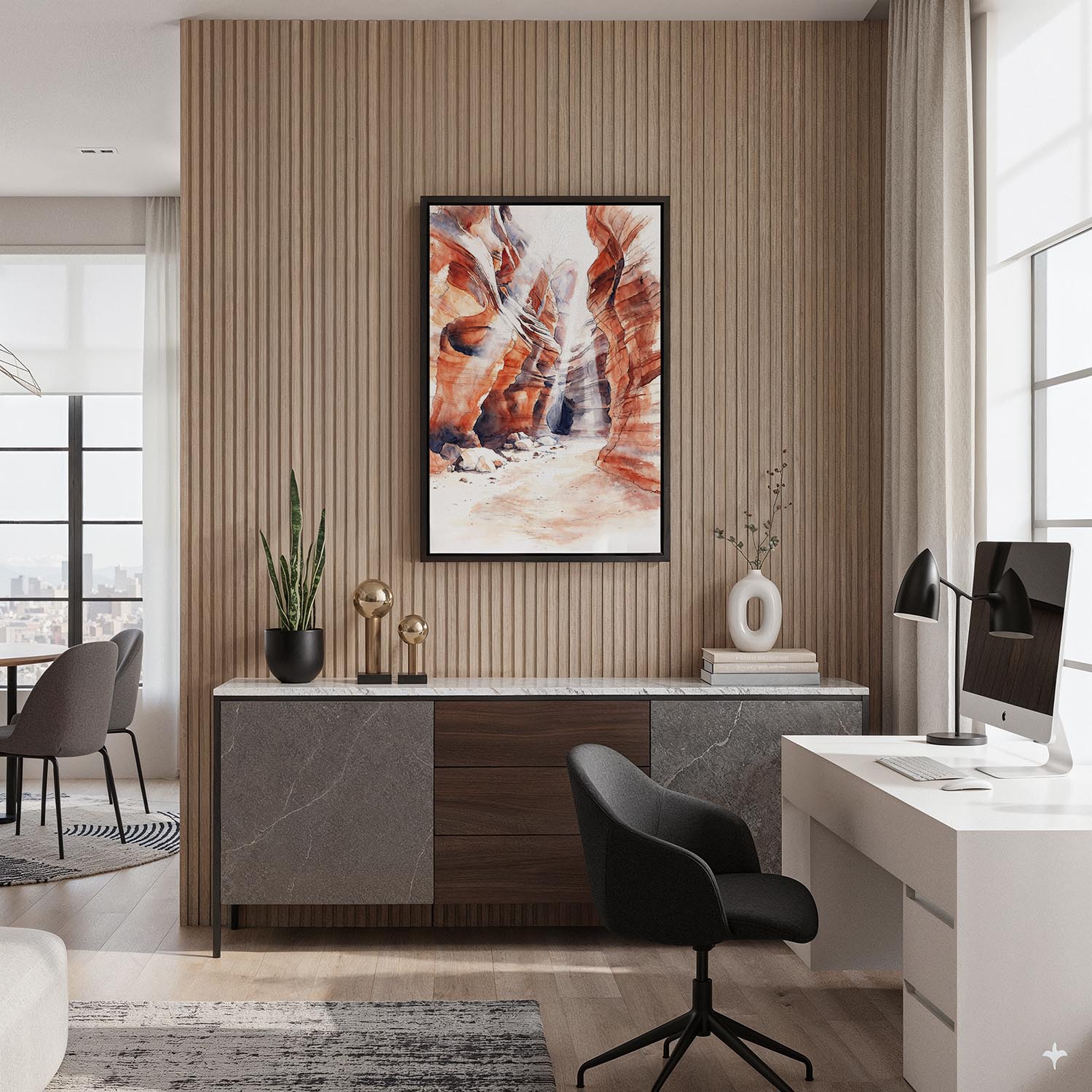 Framed Antelope Canyon Watercolor Canvas Print – Desert Landscape Wall Art