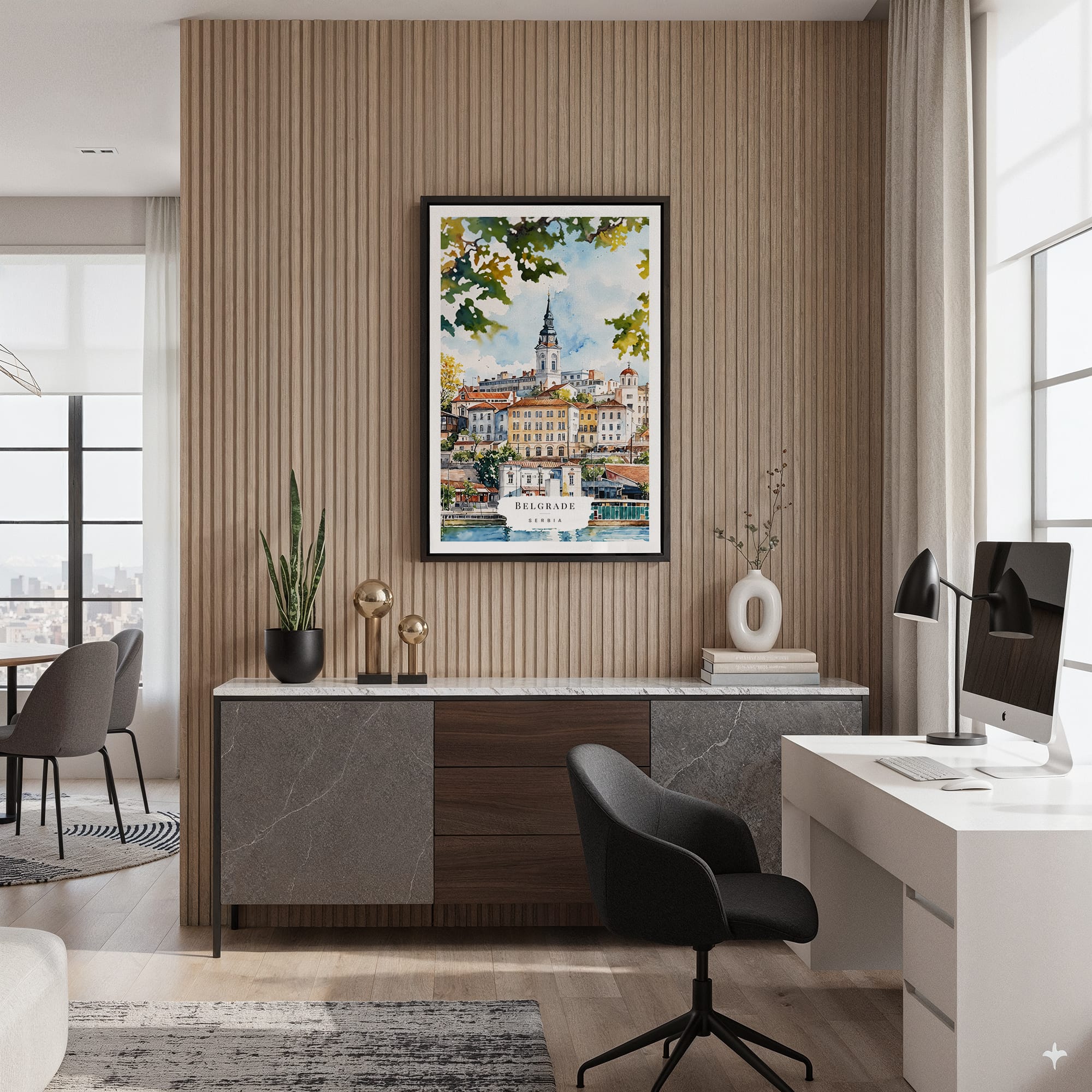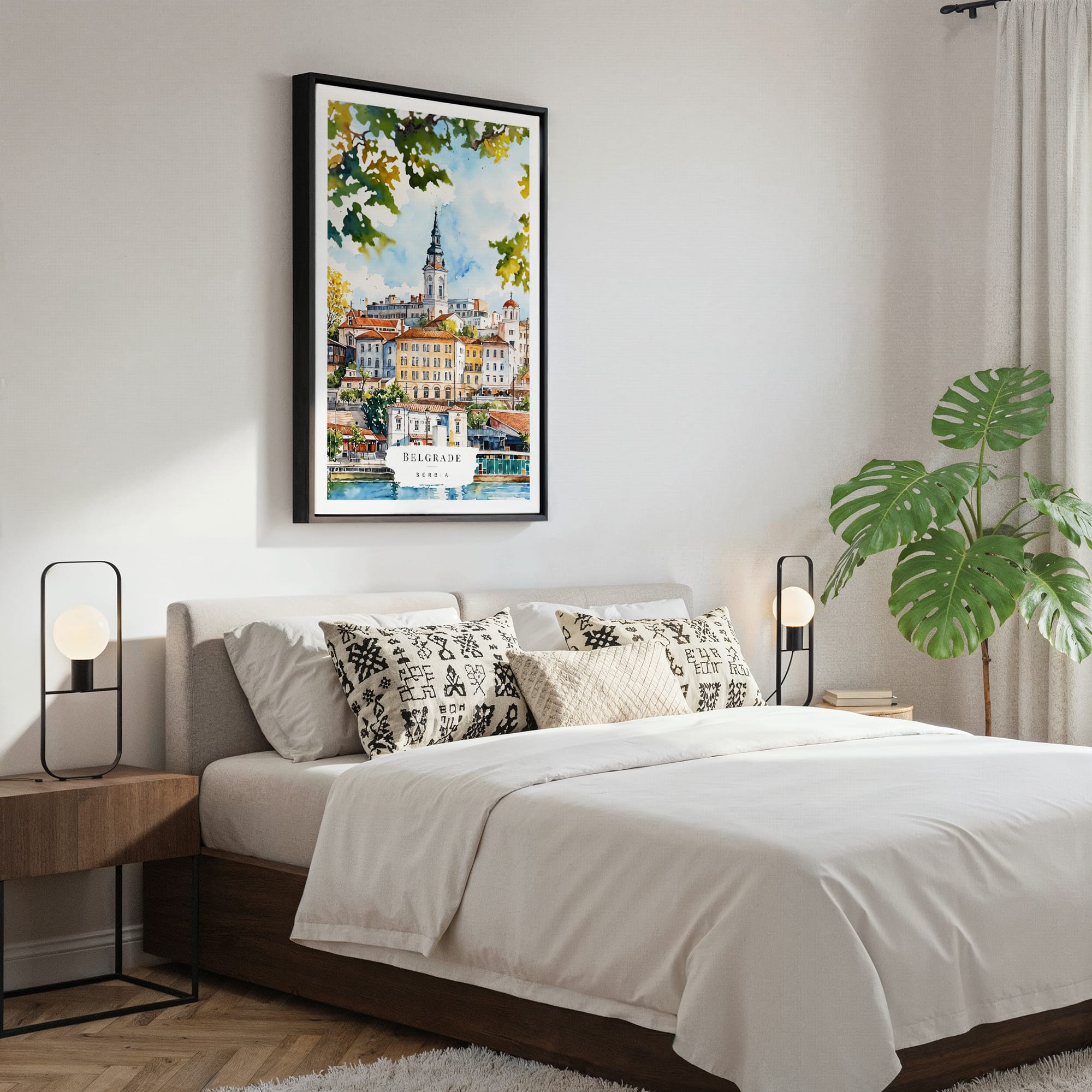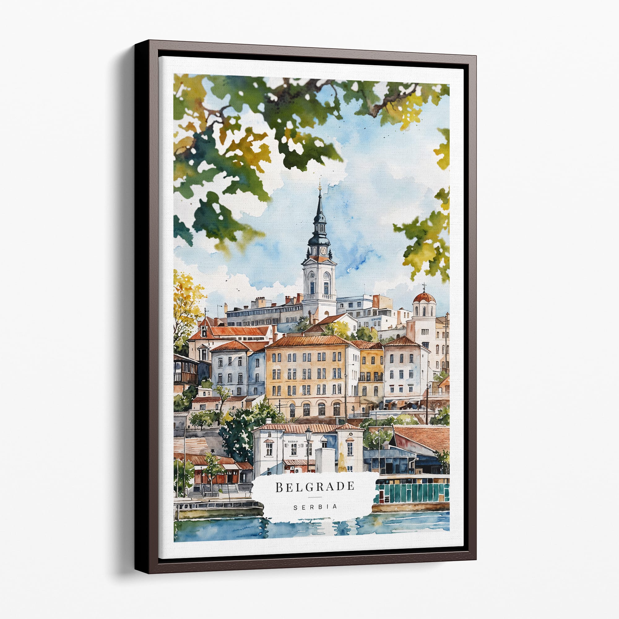 Framed Belgrade Watercolor Canvas Print – Vibrant Cityscape Wall Art