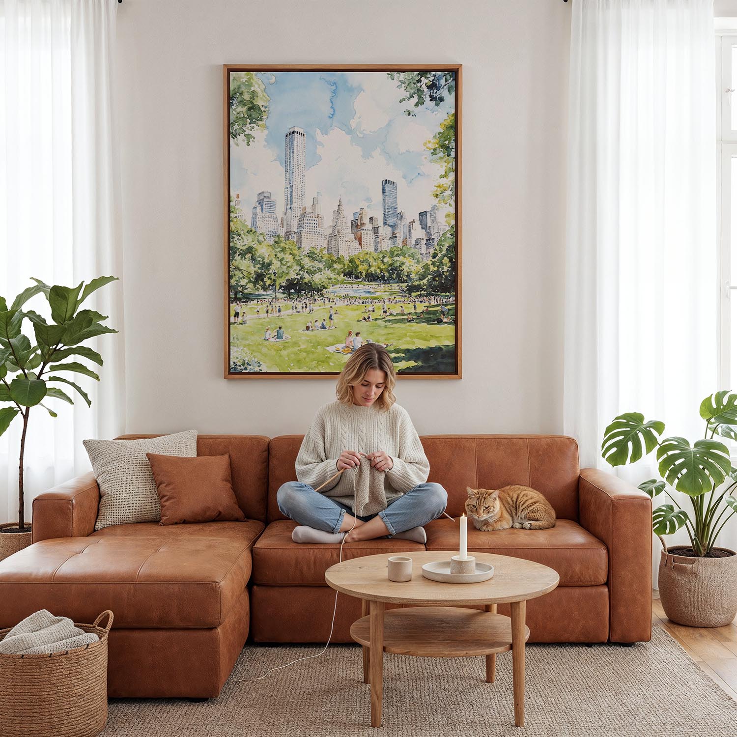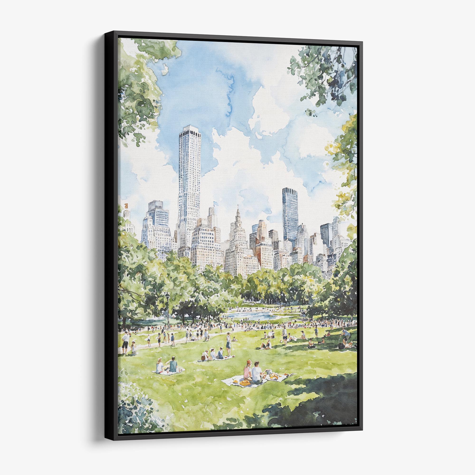Framed Central Park New York Watercolor Canvas Print – Cityscape Wall Art