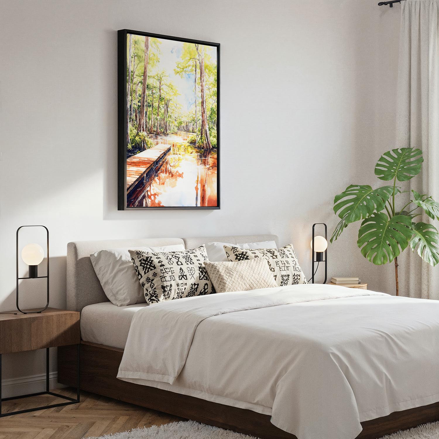 Framed Congaree National Park Watercolor Canvas Print – Tranquil Natural Landscape