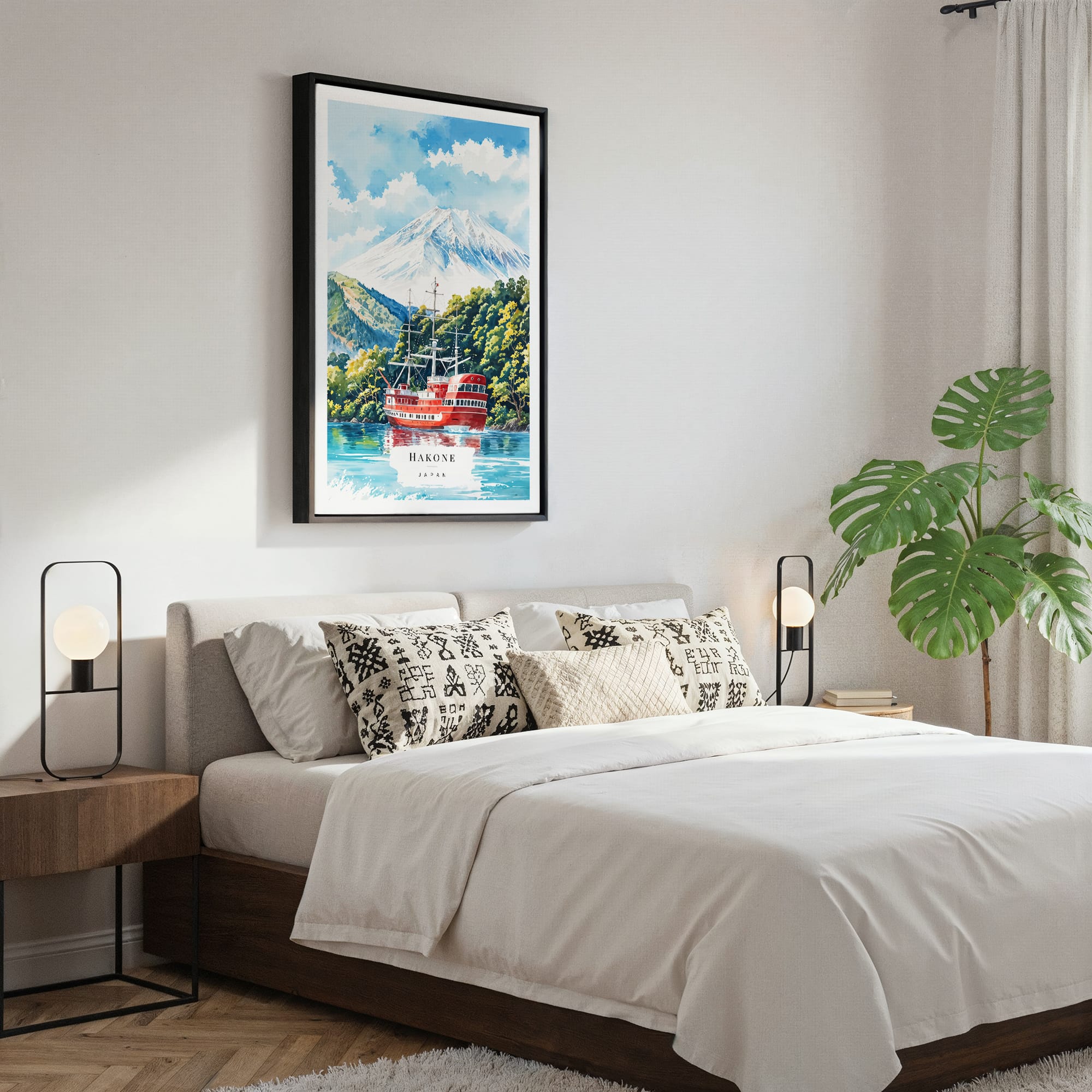 Framed Hakone with Mount Fuji Watercolor Canvas Print – Serene Landscape Wall Art