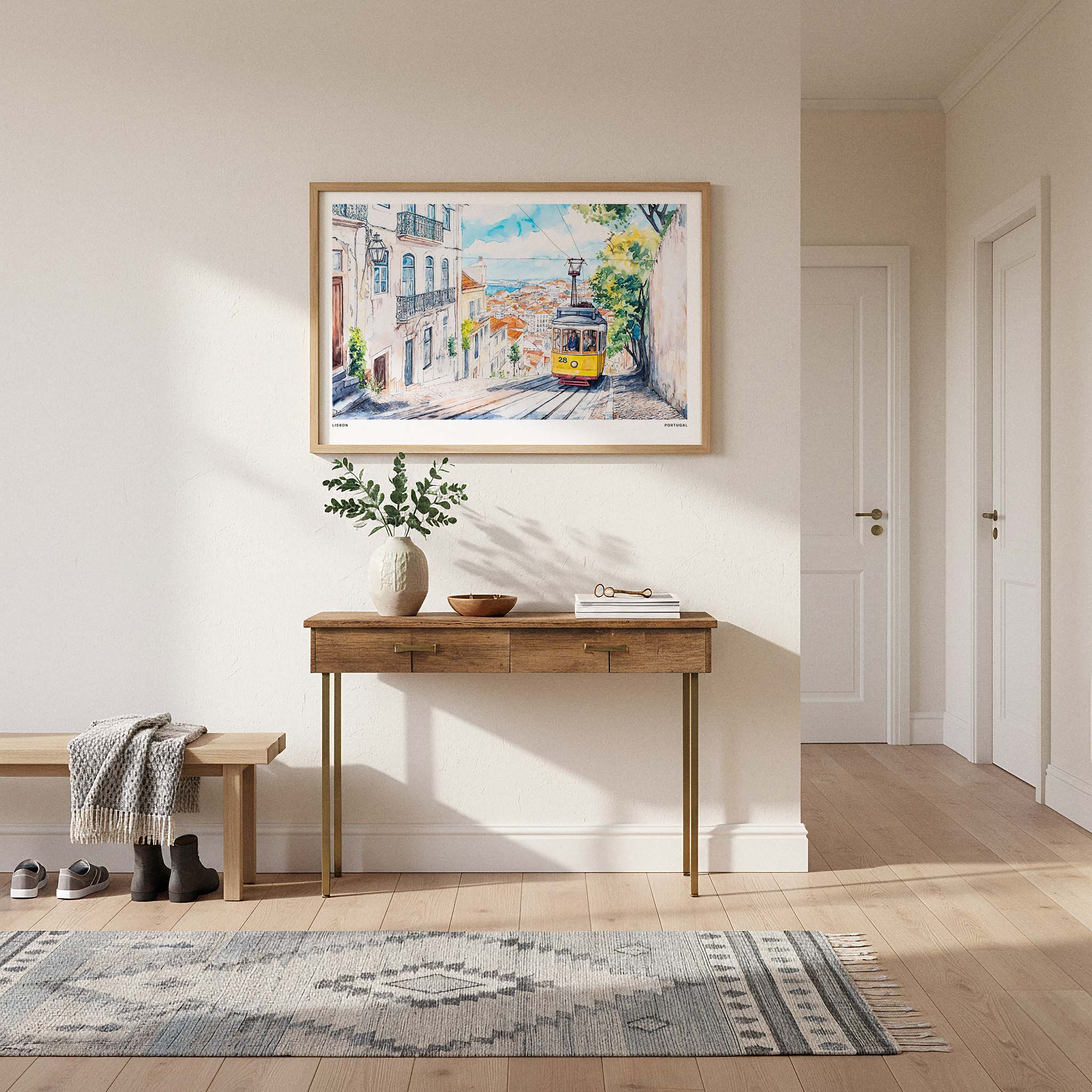 This art print showcases the charming Tram 28 weaving through the picturesque streets of Lisbon, Portugal. The vibrant colors and detailed scenery evoke a sense of adventure and warmth, making it ideal for your living room, office, or hallway. It’s a perfect piece for travelers or anyone captivated by city life. Enjoy it on your own or share it as a thoughtful gift.