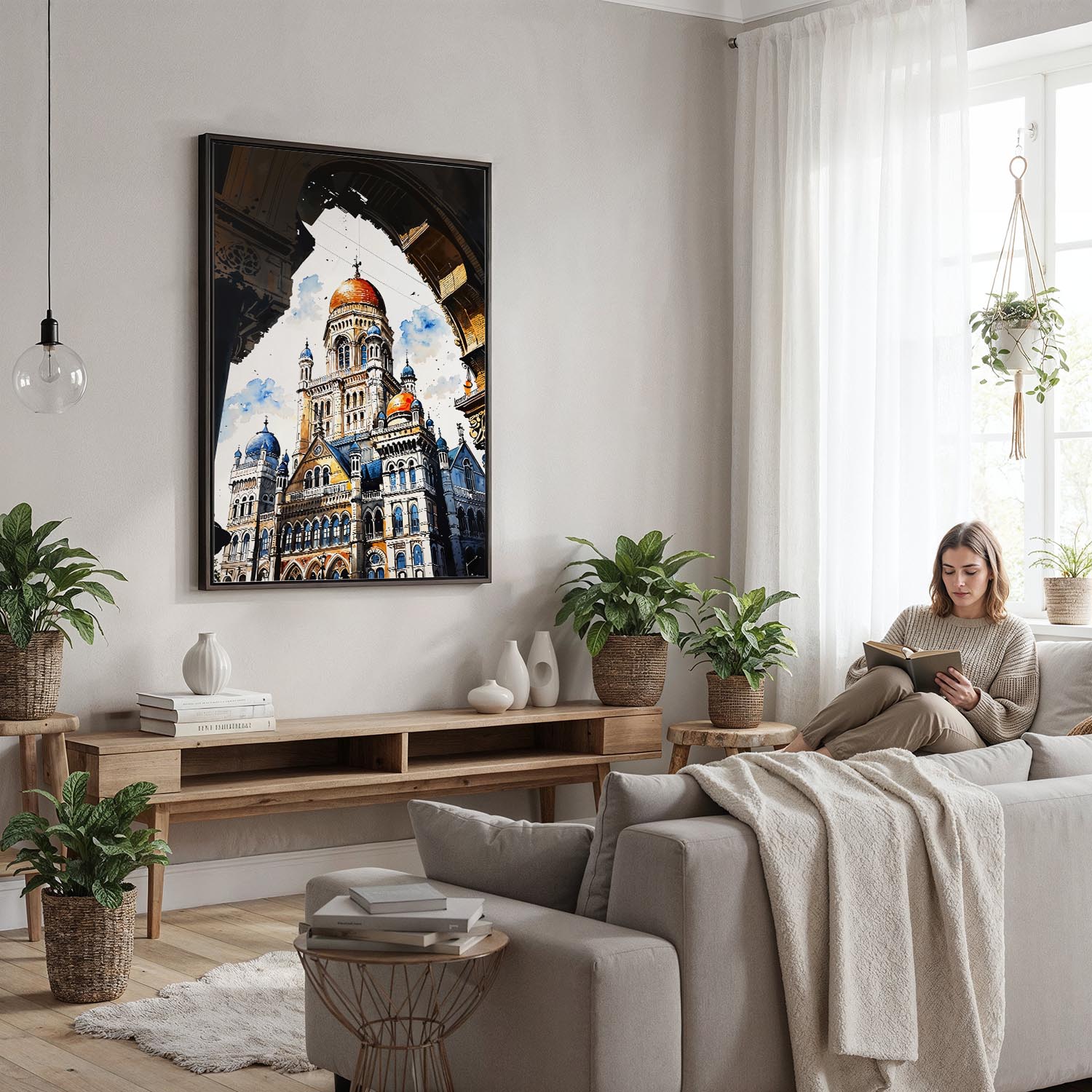 Experience the architectural beauty of Mumbai with this vivid watercolor canvas print capturing the iconic BMC Building. The artwork illuminates the intricate details and vibrant hues, reflecting the city’s dynamic spirit.