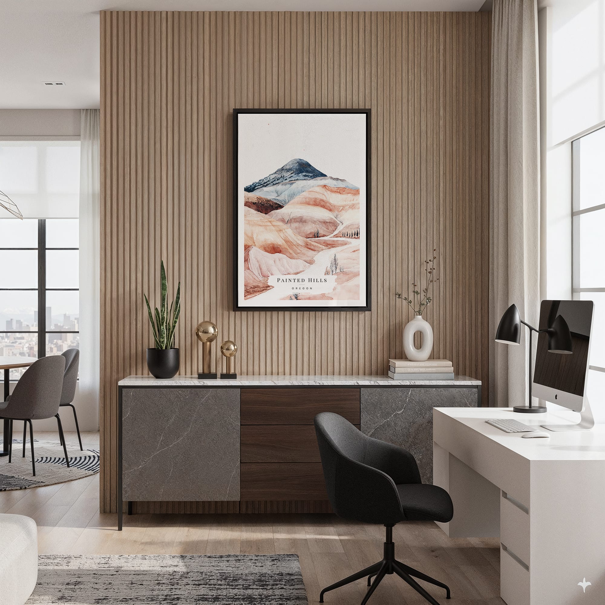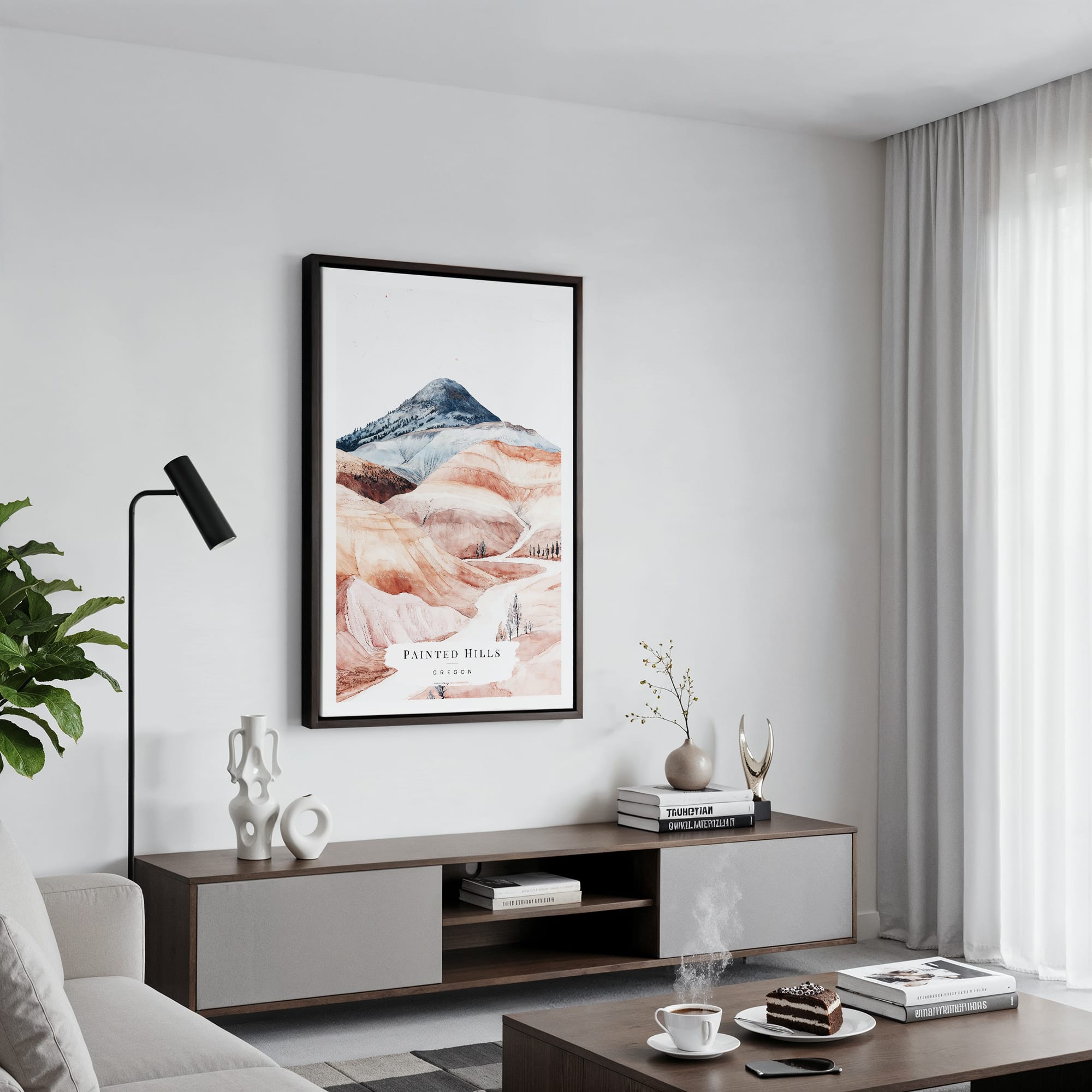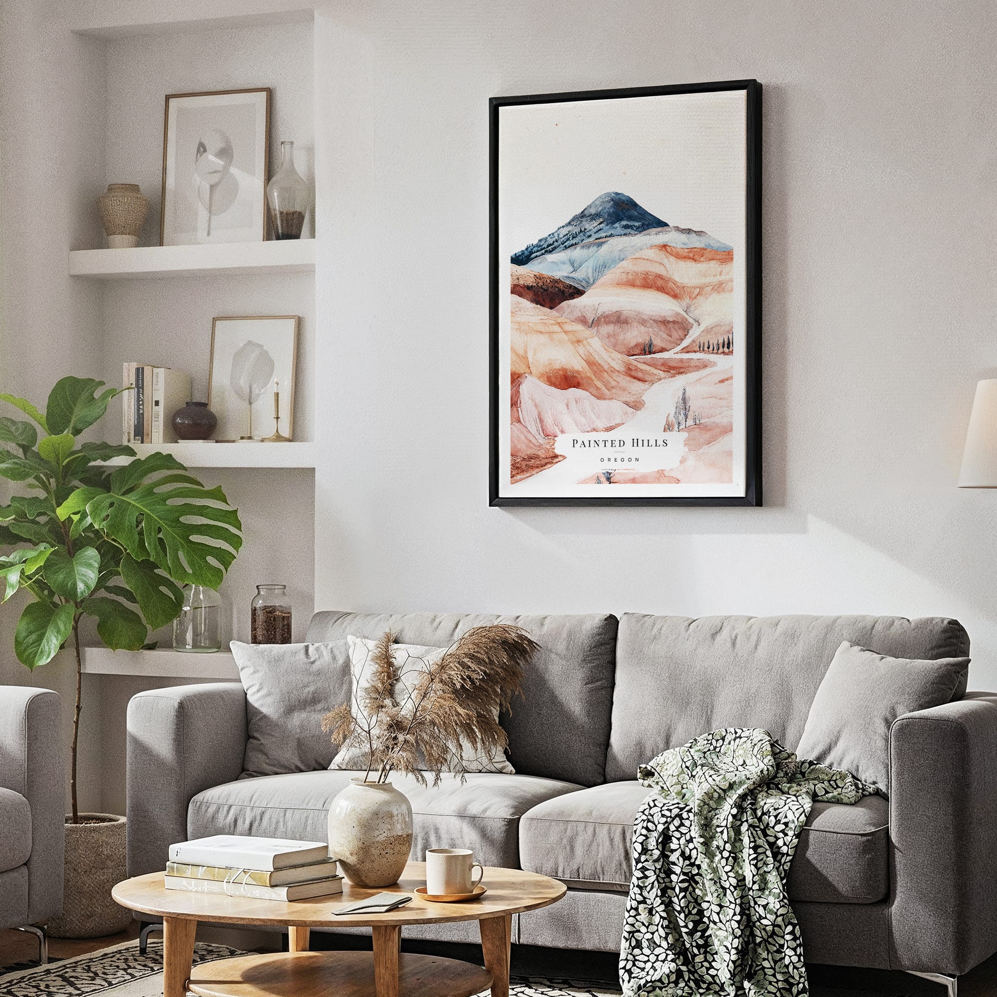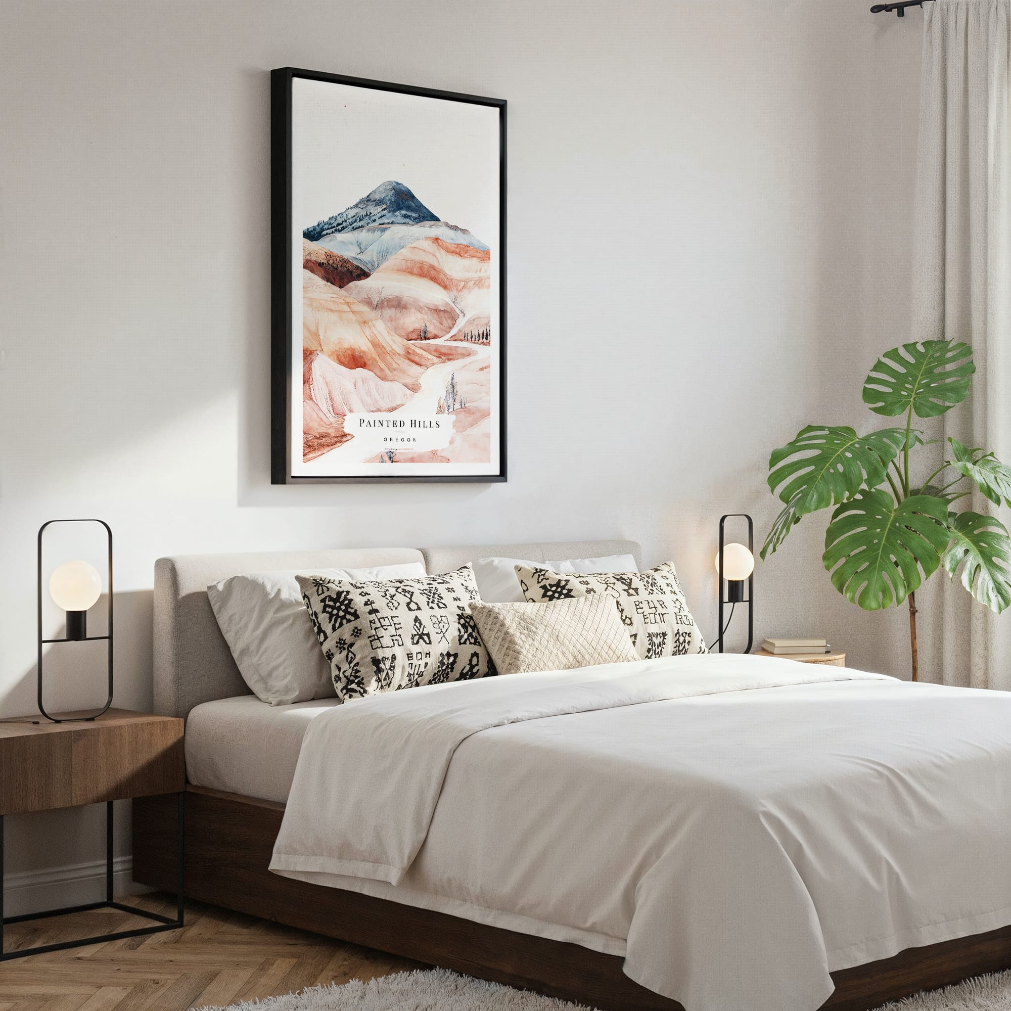 Framed Painted Hills Oregon Watercolor Canvas Print – Serene Landscape Wall Art