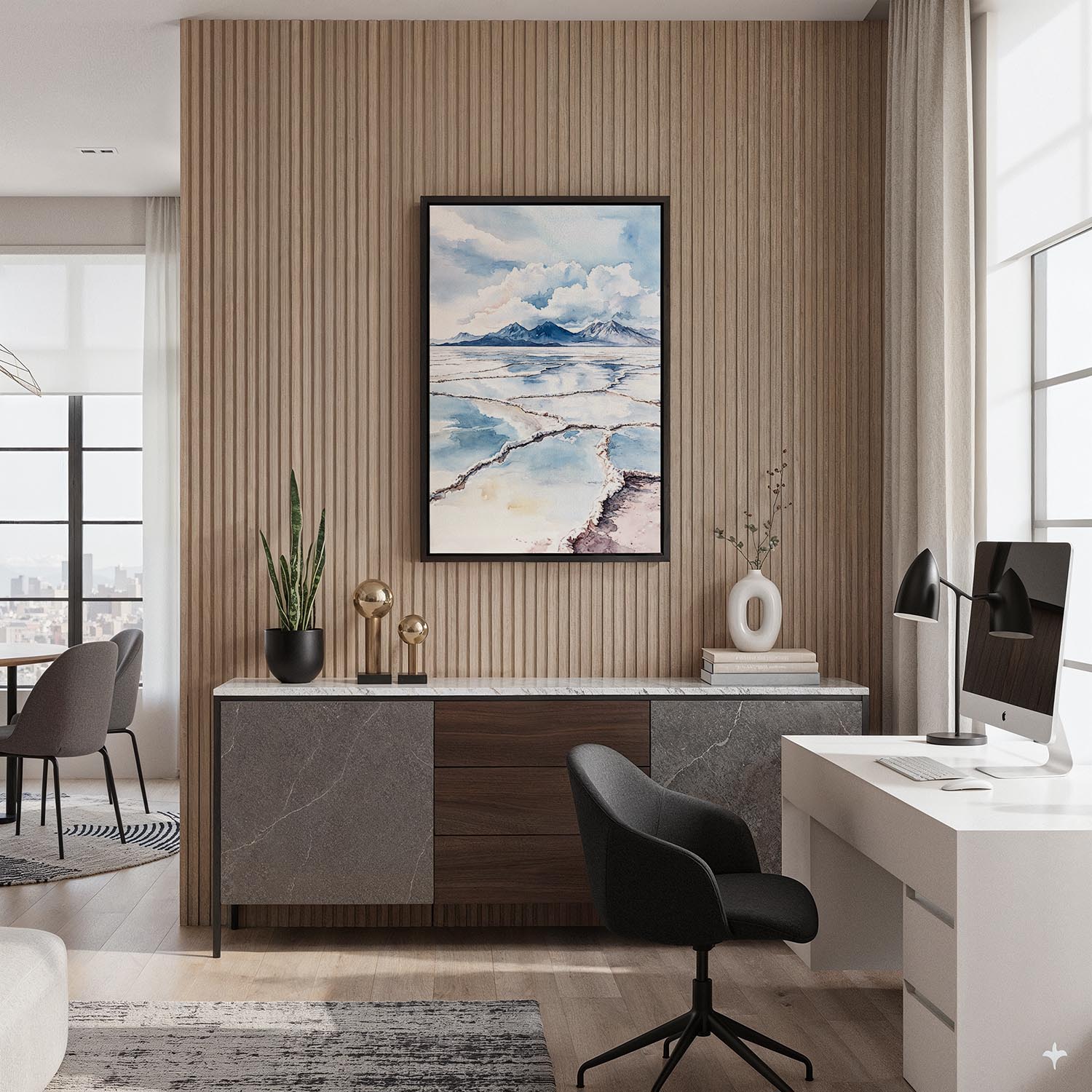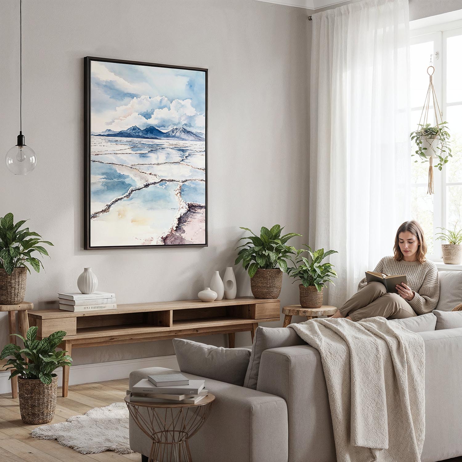 Framed Salar de Uyuni Watercolor Canvas Print – Desert Landscape Wall Art