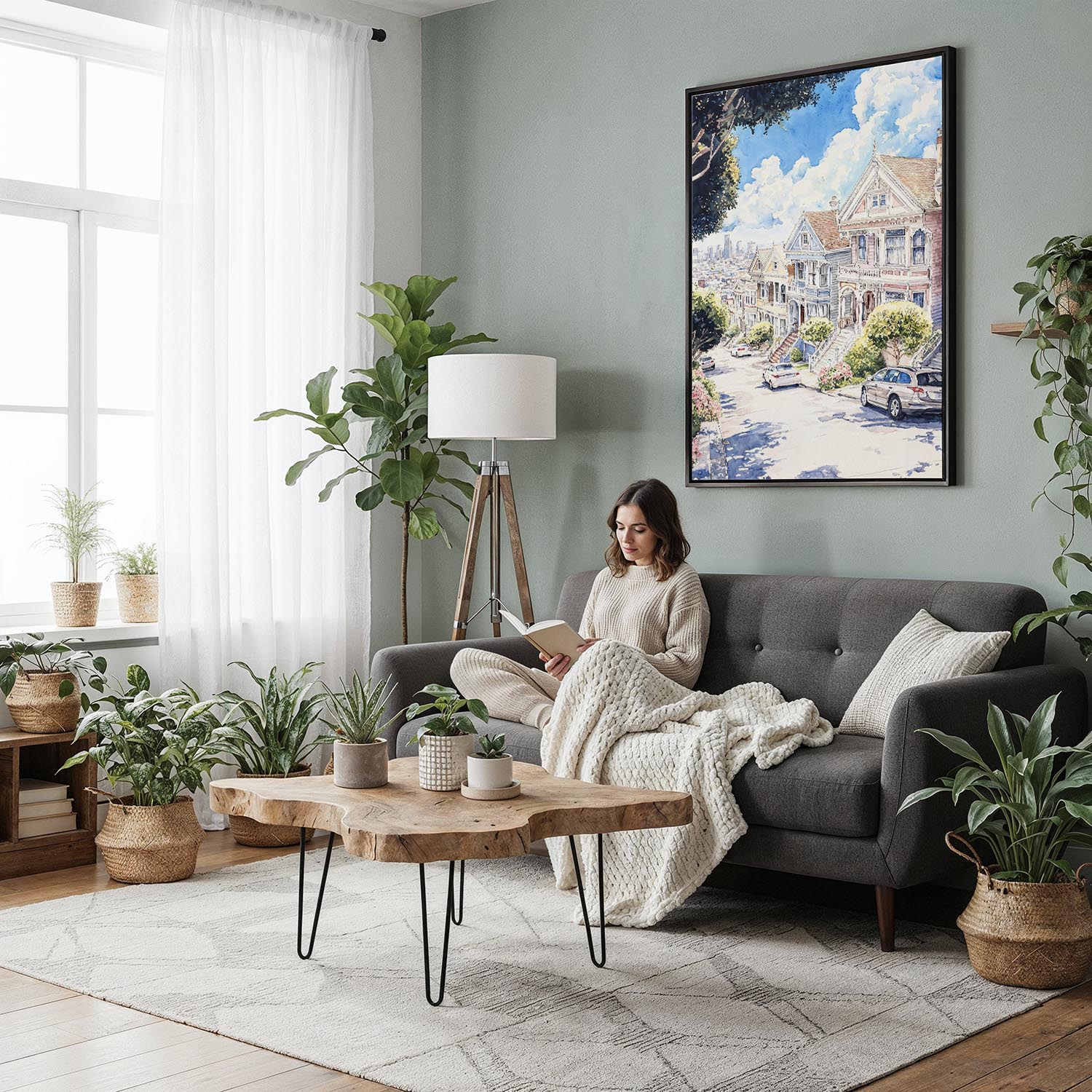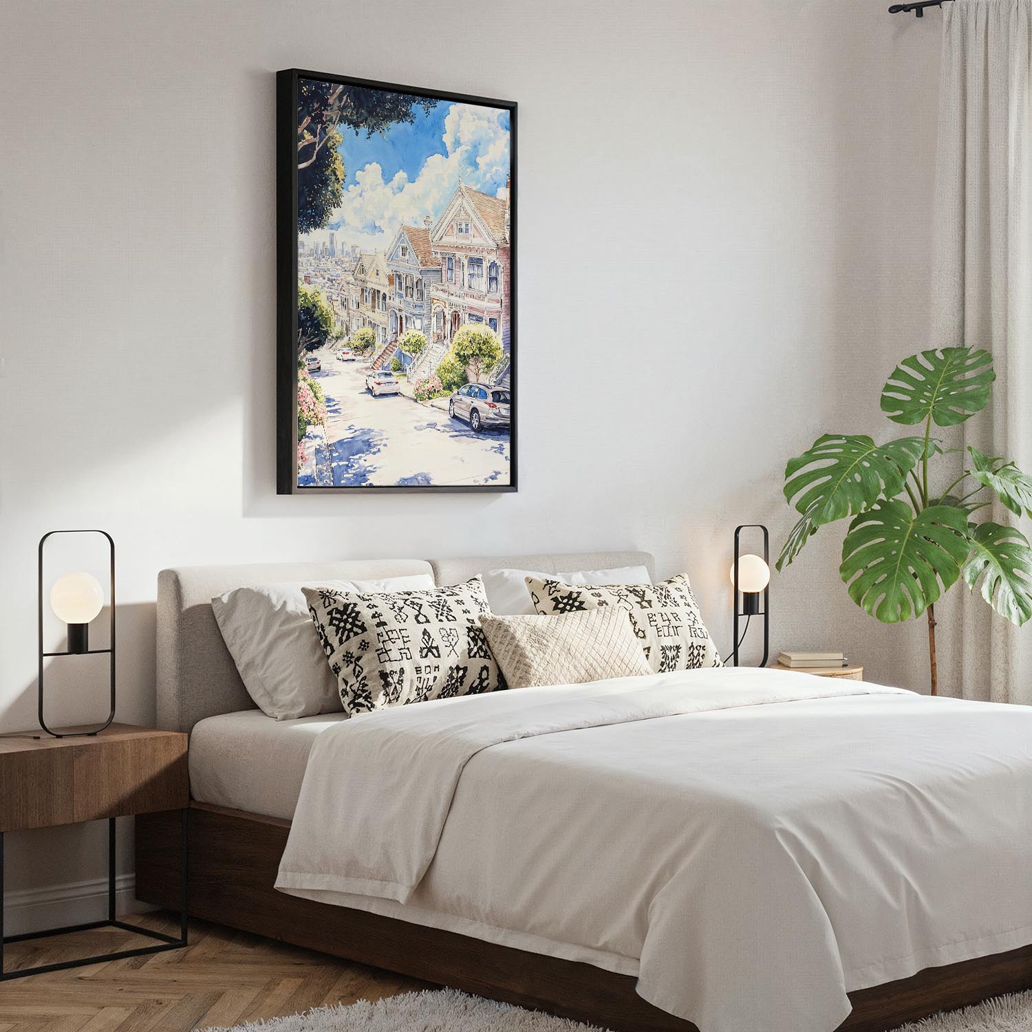 Framed San Francisco Painted Ladies Canvas Print – Watercolor Cityscape