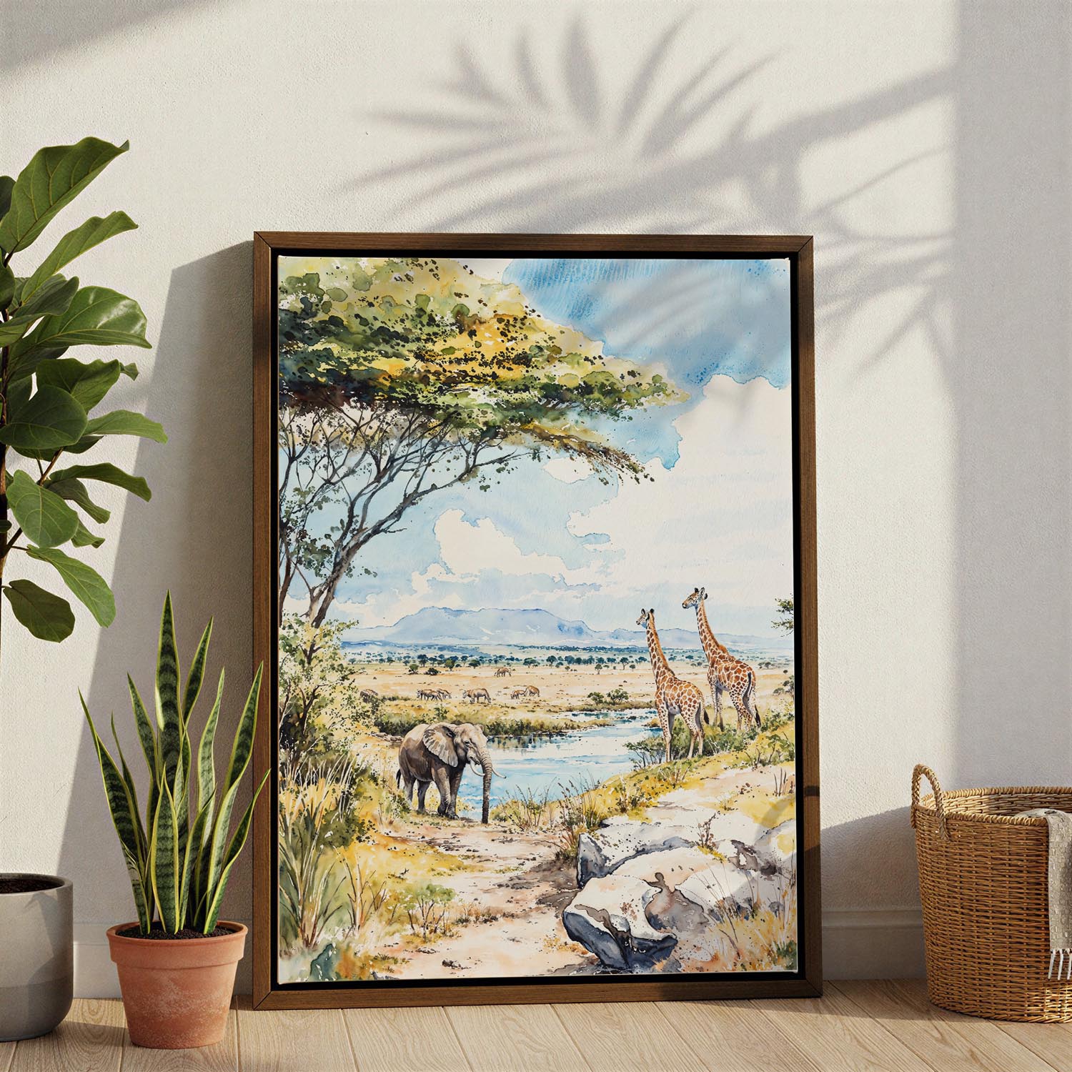 Framed Serengeti Canvas Print – Wildlife Landscape Wall Art