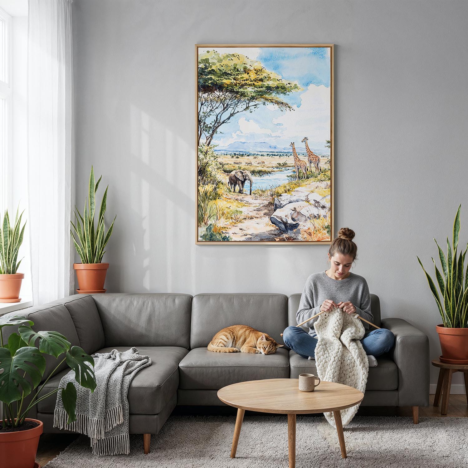 Hang it above a sofa, in a hallway, or in a creative office space, and let the lively spirit of the Serengeti inspire your surroundings. It’s perfect for personal enjoyment or as a thoughtful gift for wildlife enthusiasts.