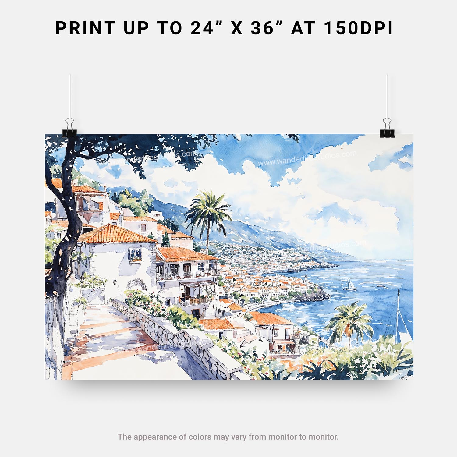 Bring a piece of Funchal’s coastal charm into your home with this watercolor digital download. Its vibrant colors and picturesque landscape make it easy to print and display, instantly transforming any space.