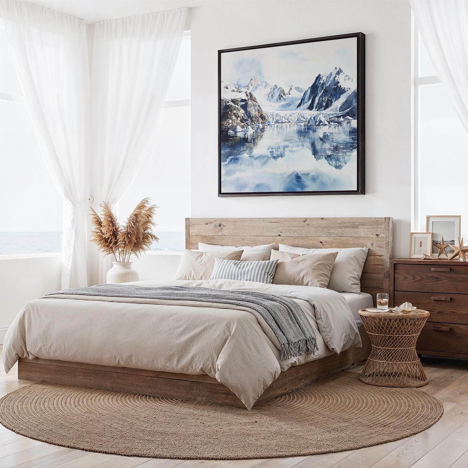 Reveal the beauty of Glacier Bay with this square canvas print, showcasing serene blue hues and majestic mountains. Its balanced design makes it a captivating addition to living rooms, bedrooms, or office spaces.