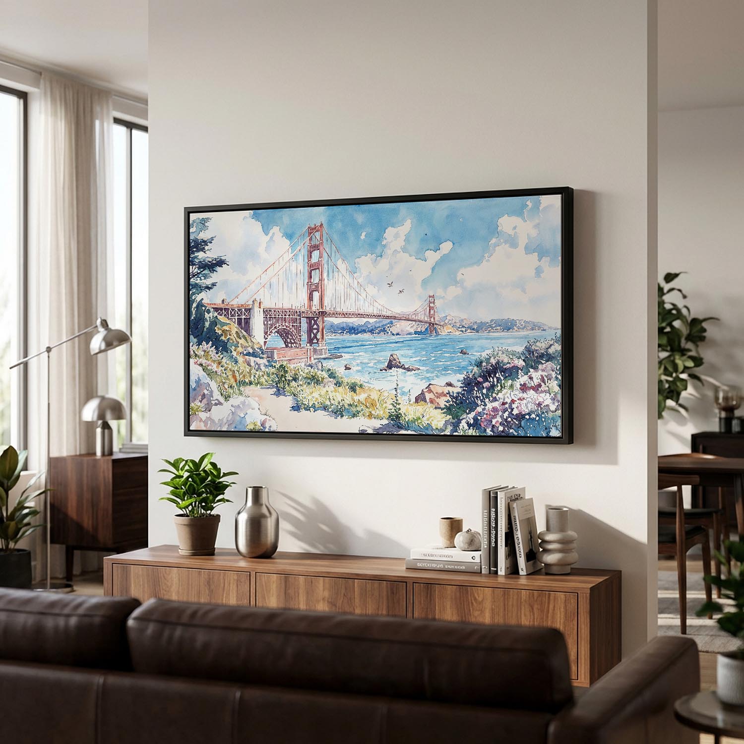 Golden Gate Bridge Canvas Print | Watercolor Panorama of San Francisco | Coastal Wall Art