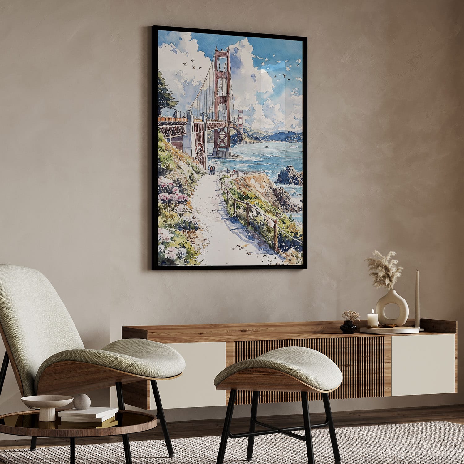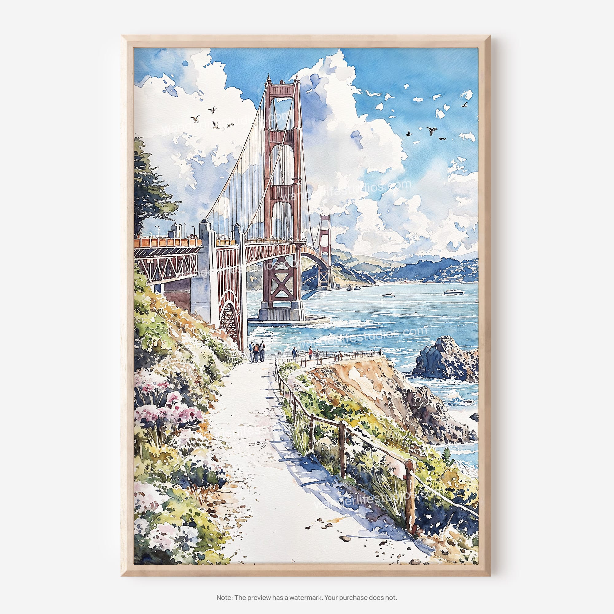 Golden Gate Bridge Watercolor Art – San Francisco Digital Download Wall Art