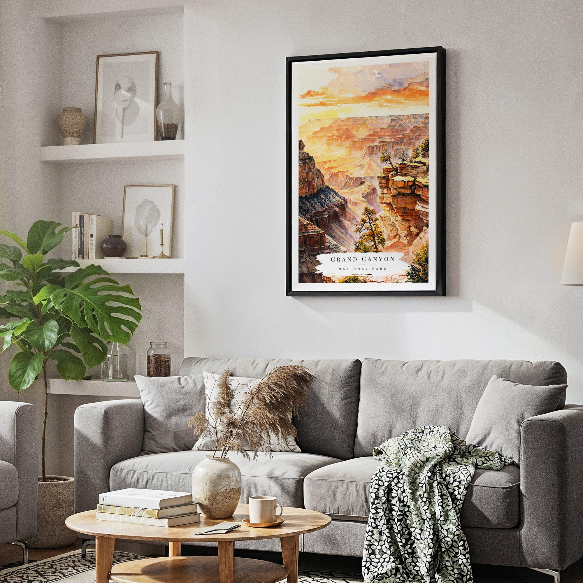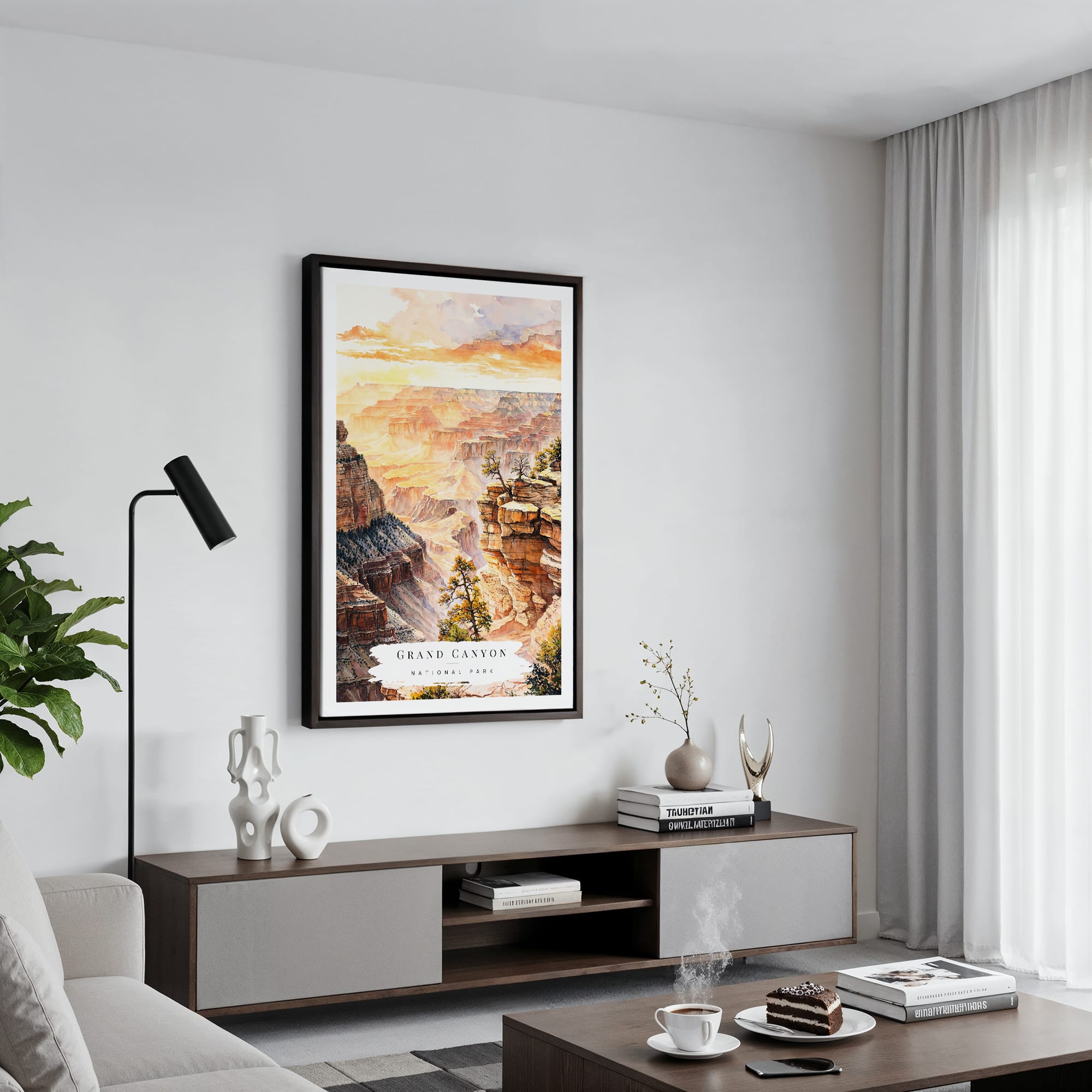 Grand Canyon National Park Watercolor Canvas Art Print – Desert Landscape Wall Decor