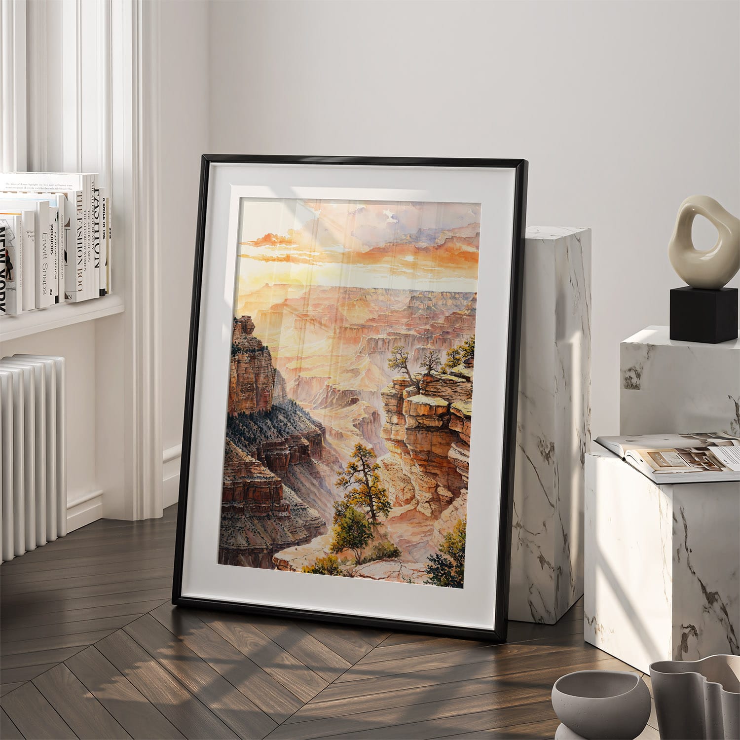 This artwork captures the enchanting beauty of the Grand Canyon with its rich colors and breathtaking scenery. It brings a touch of the great outdoors into your home, offering a tranquil and inviting atmosphere. Delivered as a high-resolution digital file, you can easily print it at home or through a local print shop. Ideal for living rooms, bedrooms, or offices, this piece allows you to enjoy the essence of nature instantly and effortlessly.