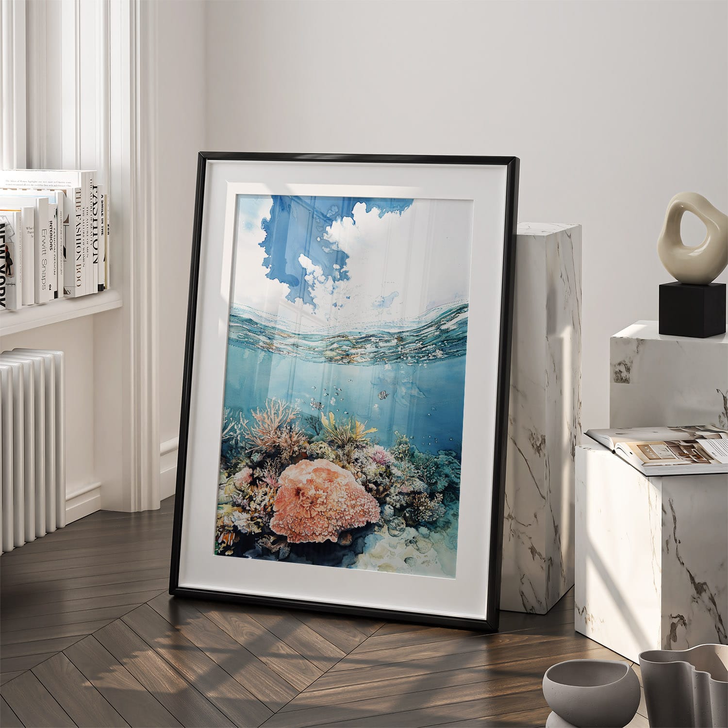 Great Barrier Reef Watercolor Art – Colorful Underwater Scene Digital Download