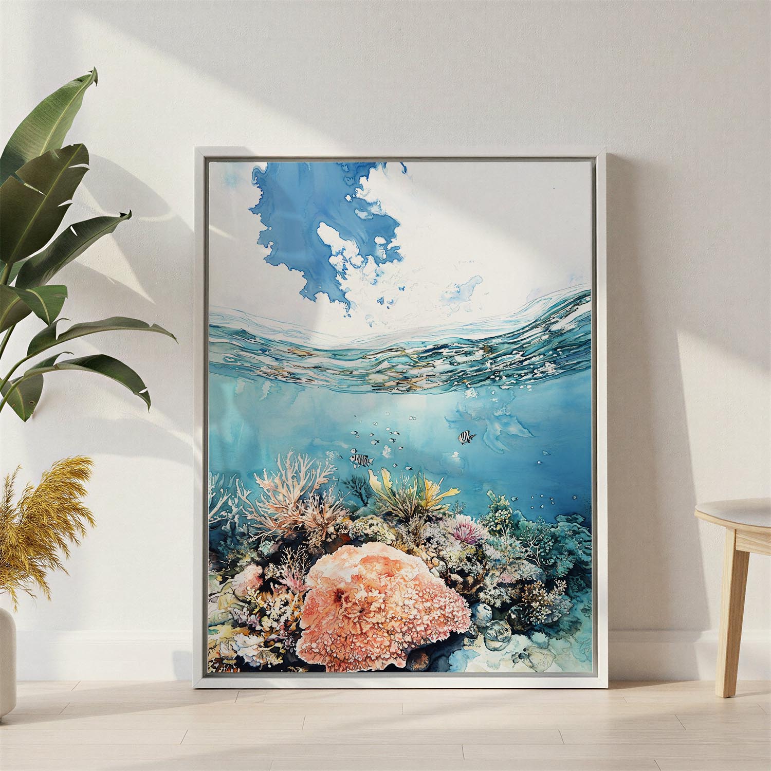 Great Barrier Reef Watercolor Canvas Print – Coral Reef Underwater Art
