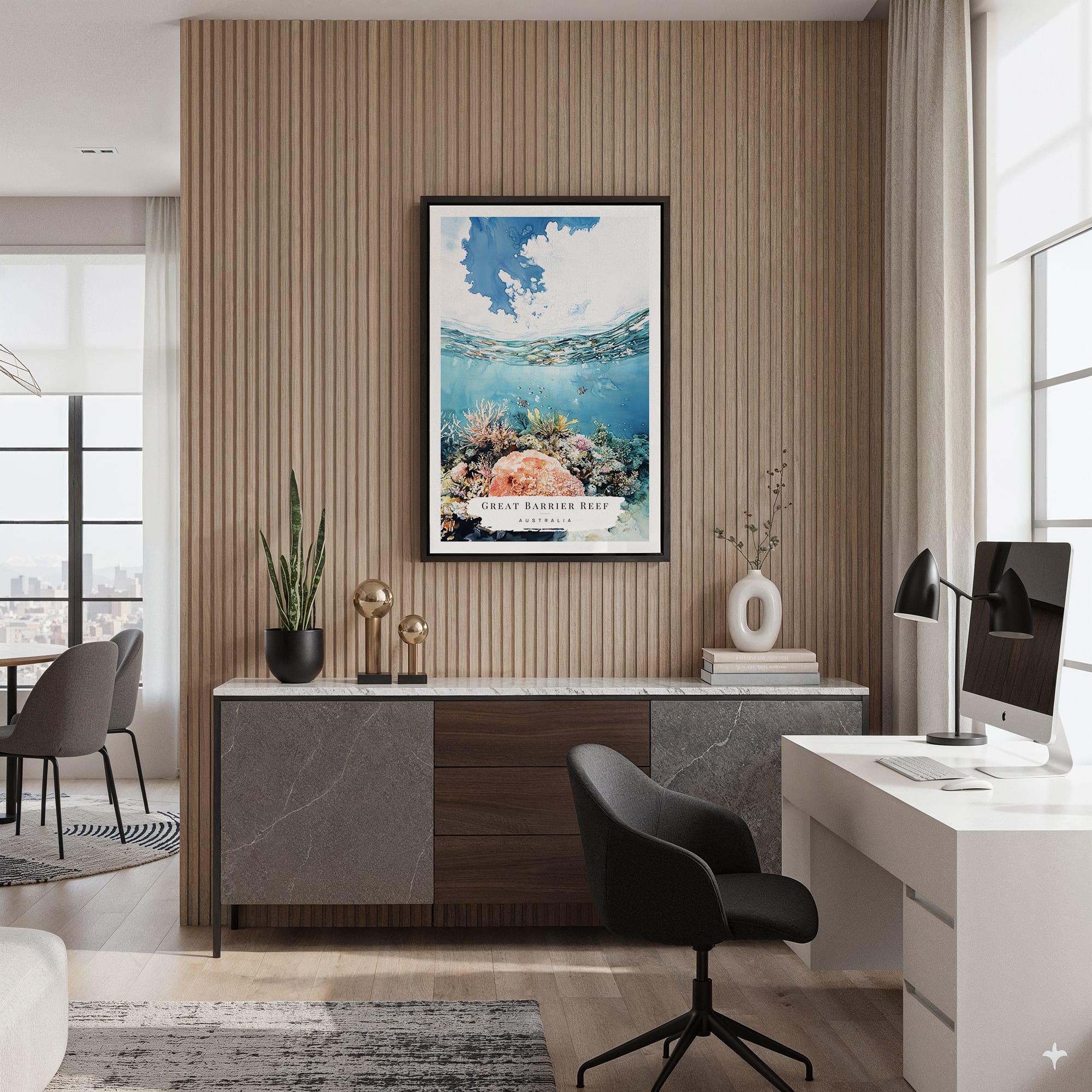 Transform your space with this Great Barrier Reef canvas art print, showcasing vivid corals and azure waters. Perfect for brightening up living rooms or offices, it makes for an inviting addition or thoughtful gift.