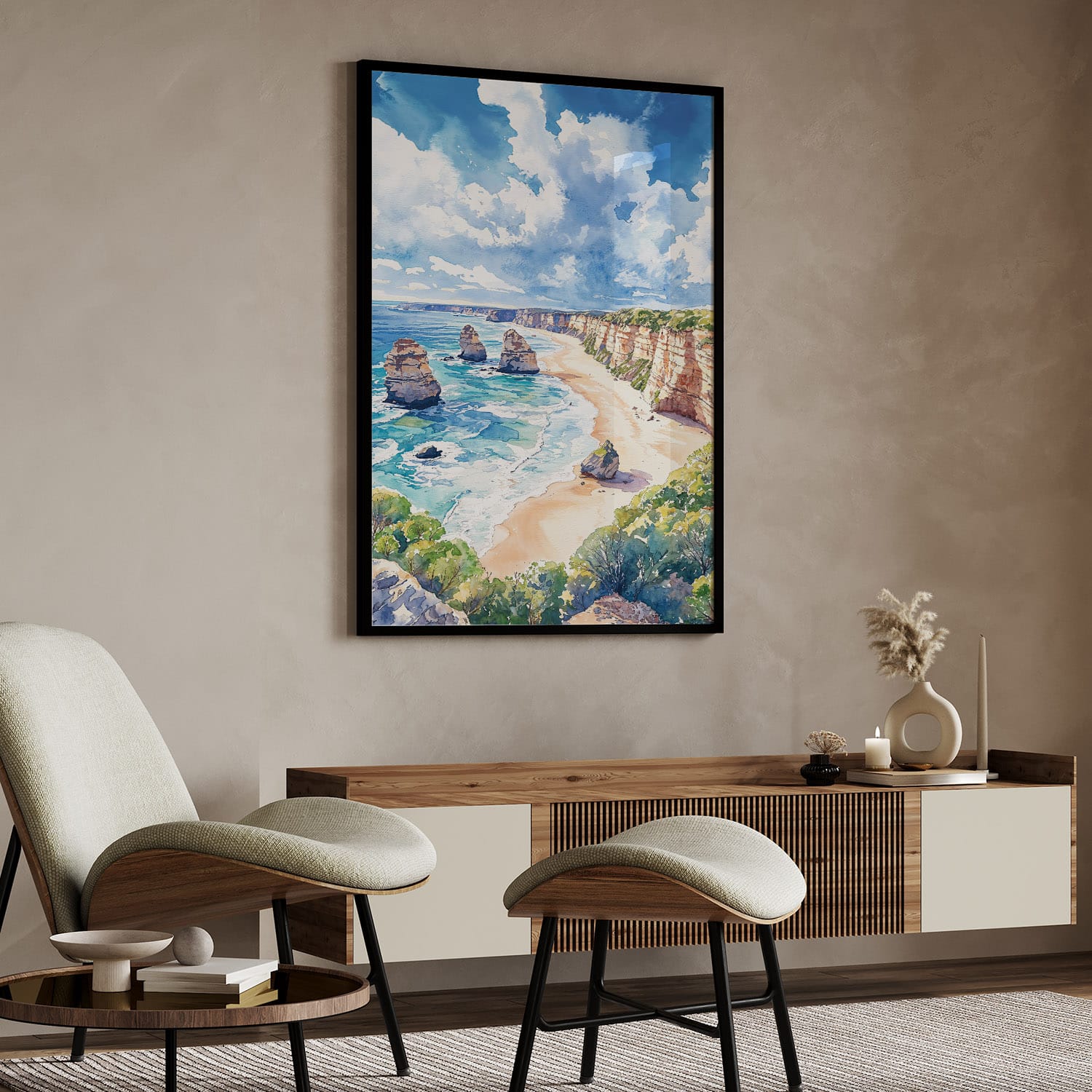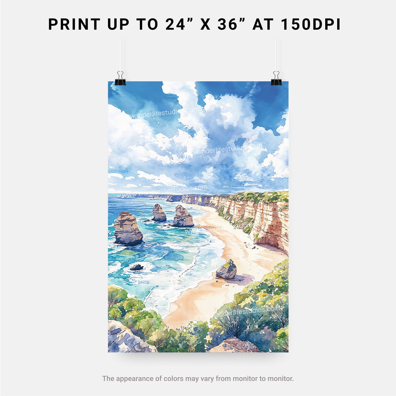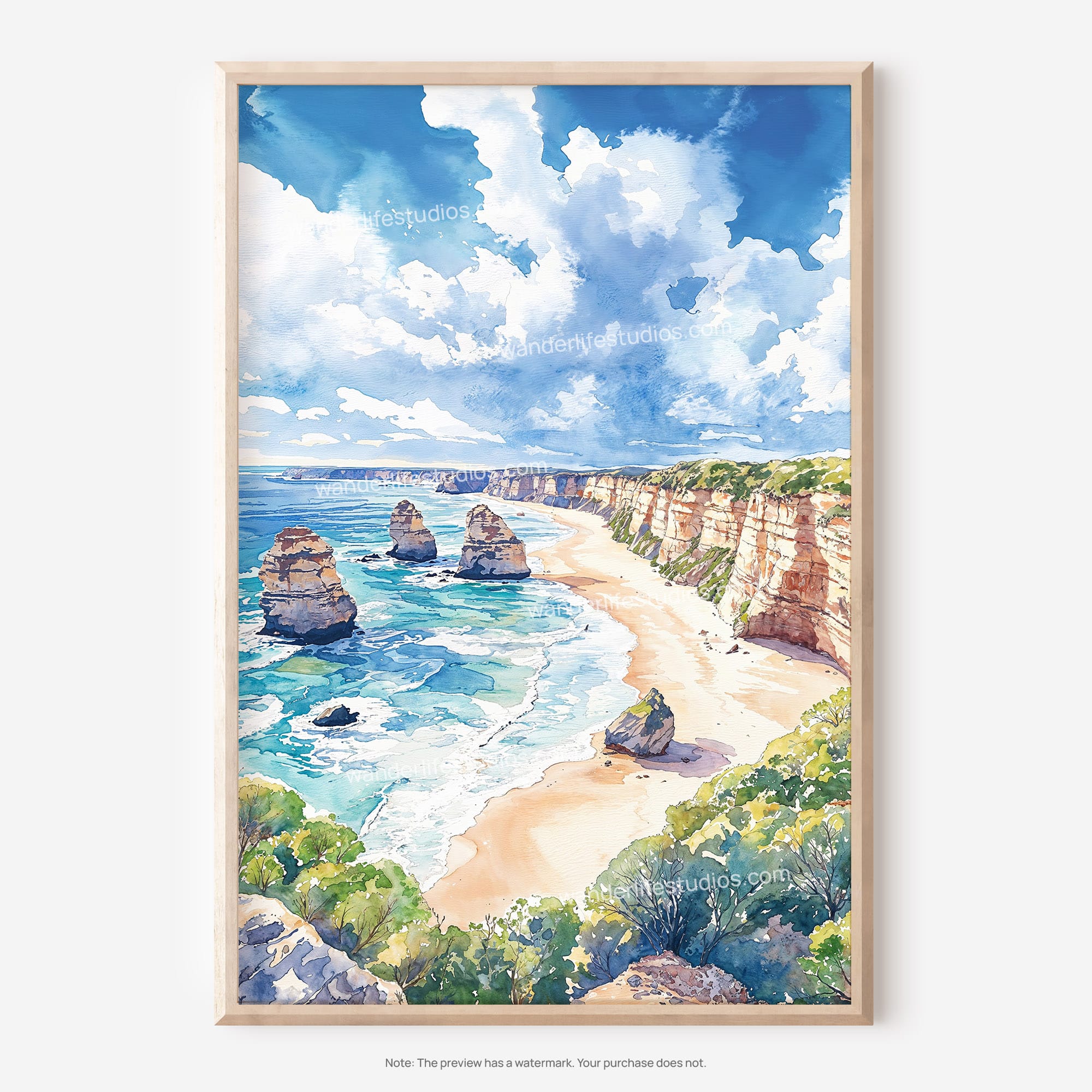 Great Ocean Road Australia Watercolor Art – Digital Download Wall Art