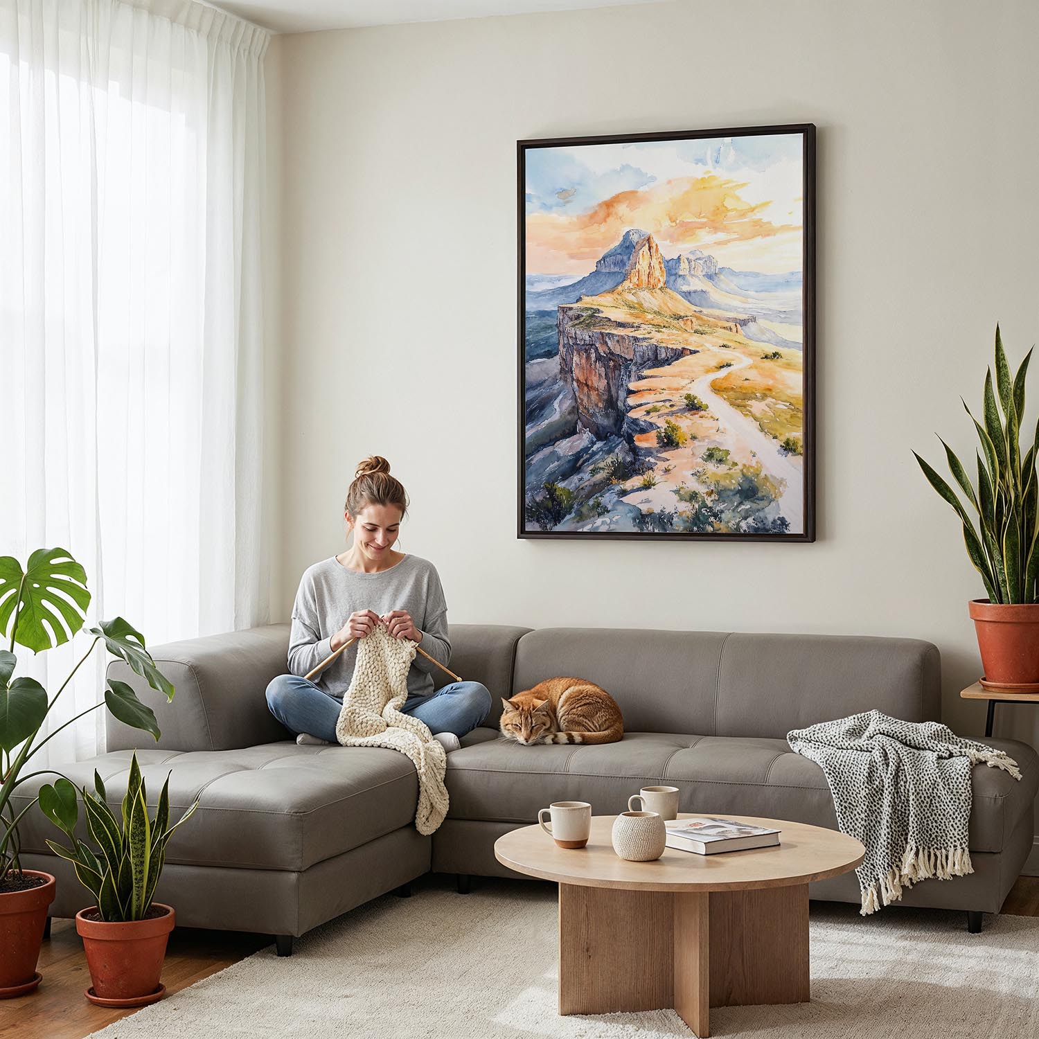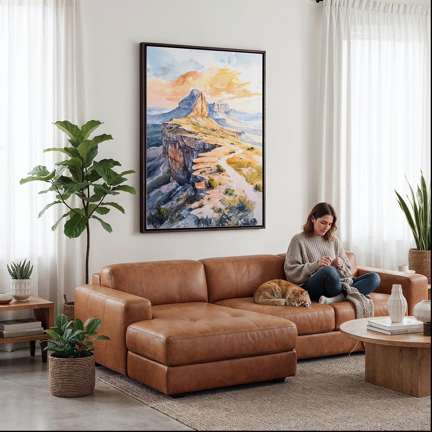 Experience the stunning beauty of the Guadalupe Mountains captured in this vibrant canvas print. The artwork highlights dramatic peaks and warm hues, evoking the park’s unique atmosphere. Available in various finishes, including unframed and with a floater frame, this print is designed using high-quality, hand-stretched canvas, solid wood stretcher bars, and fade-resistant inks for lasting appeal.