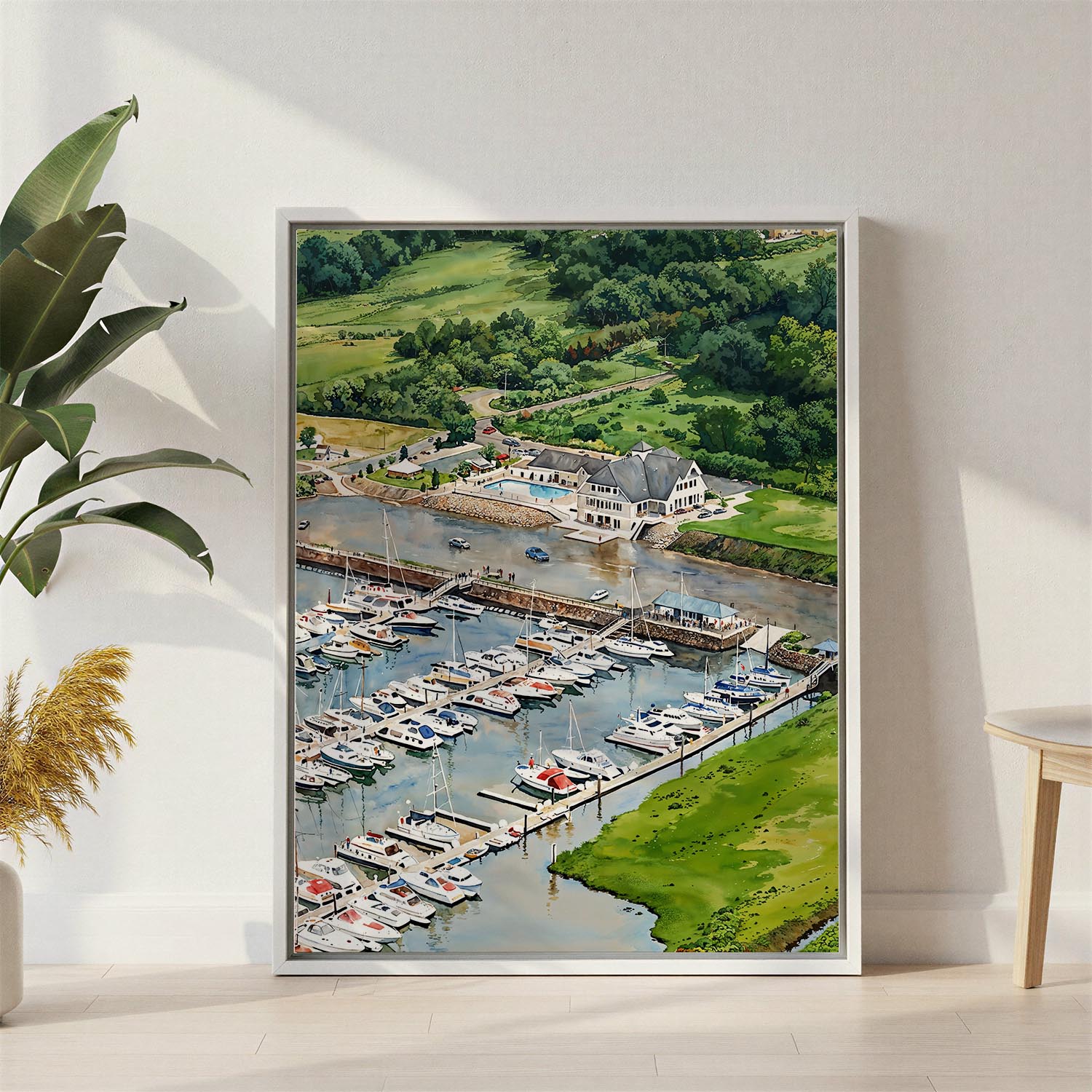 Guilford Yacht Club Watercolor Canvas Print – Coastal Marina Artwork