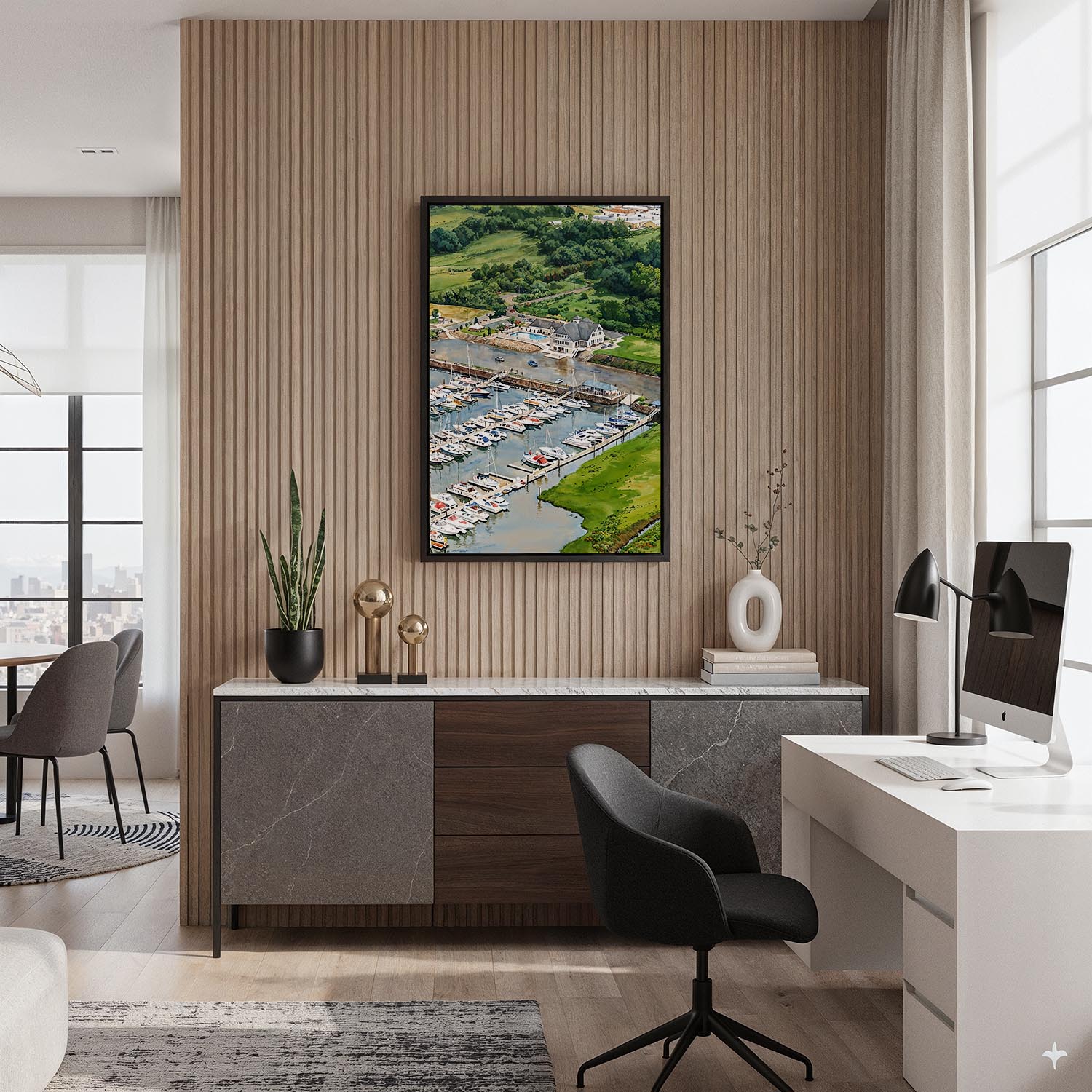 Bring the charm of Guilford’s marina into your space with this canvas print. It’s a ready-to-hang piece that complements living rooms, offices, or coastal-themed decor.