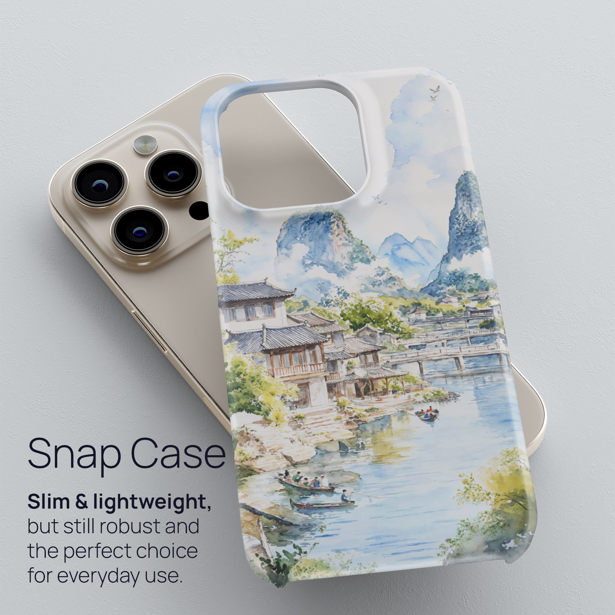 This Guilin China phone case features a tranquil watercolor scene of mountains and waterways, blending art into everyday life. Its practical design appeals to nature lovers while providing protection for your device.