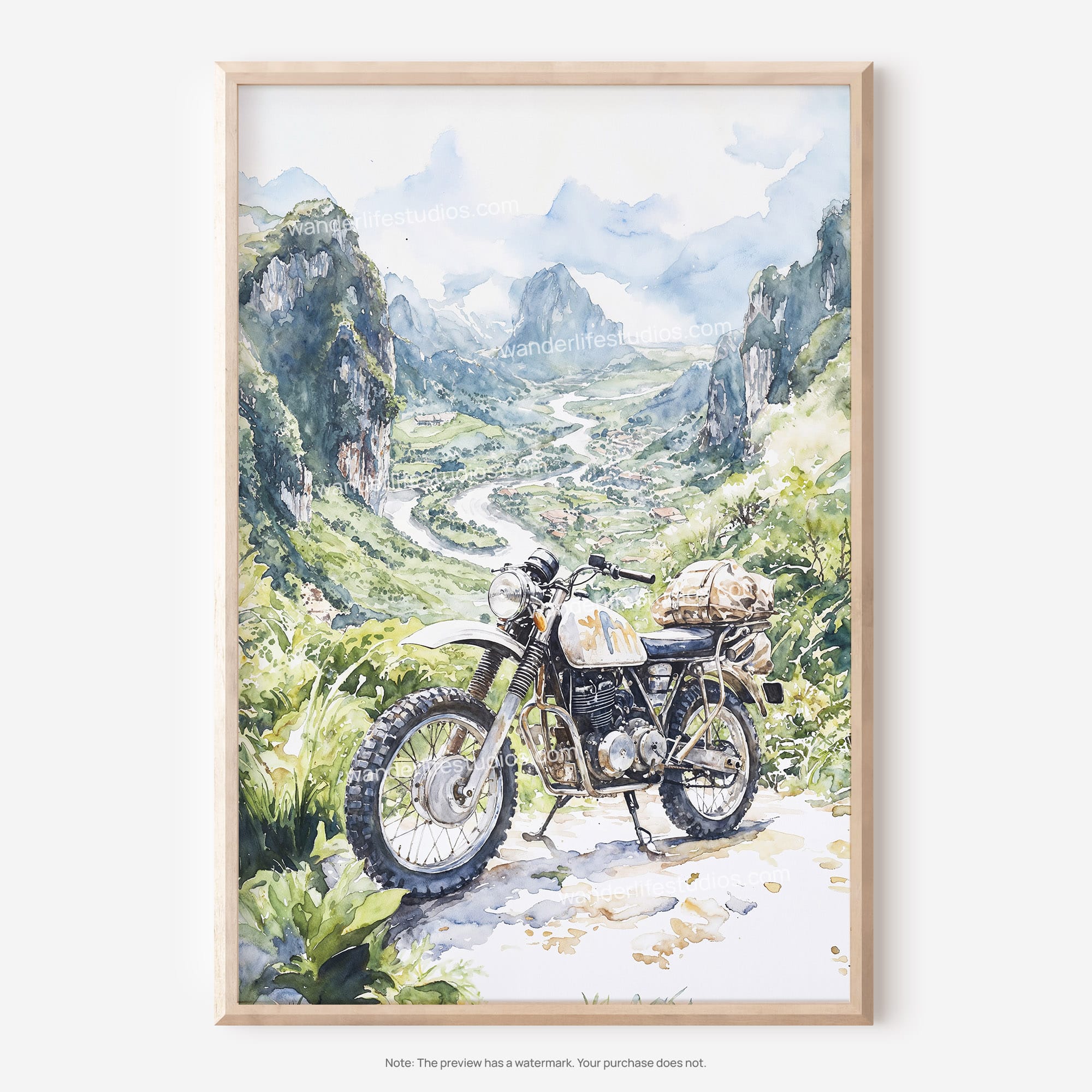 Ha Giang Loop Vietnam Watercolor Art – Motorcycle Adventure Digital Download