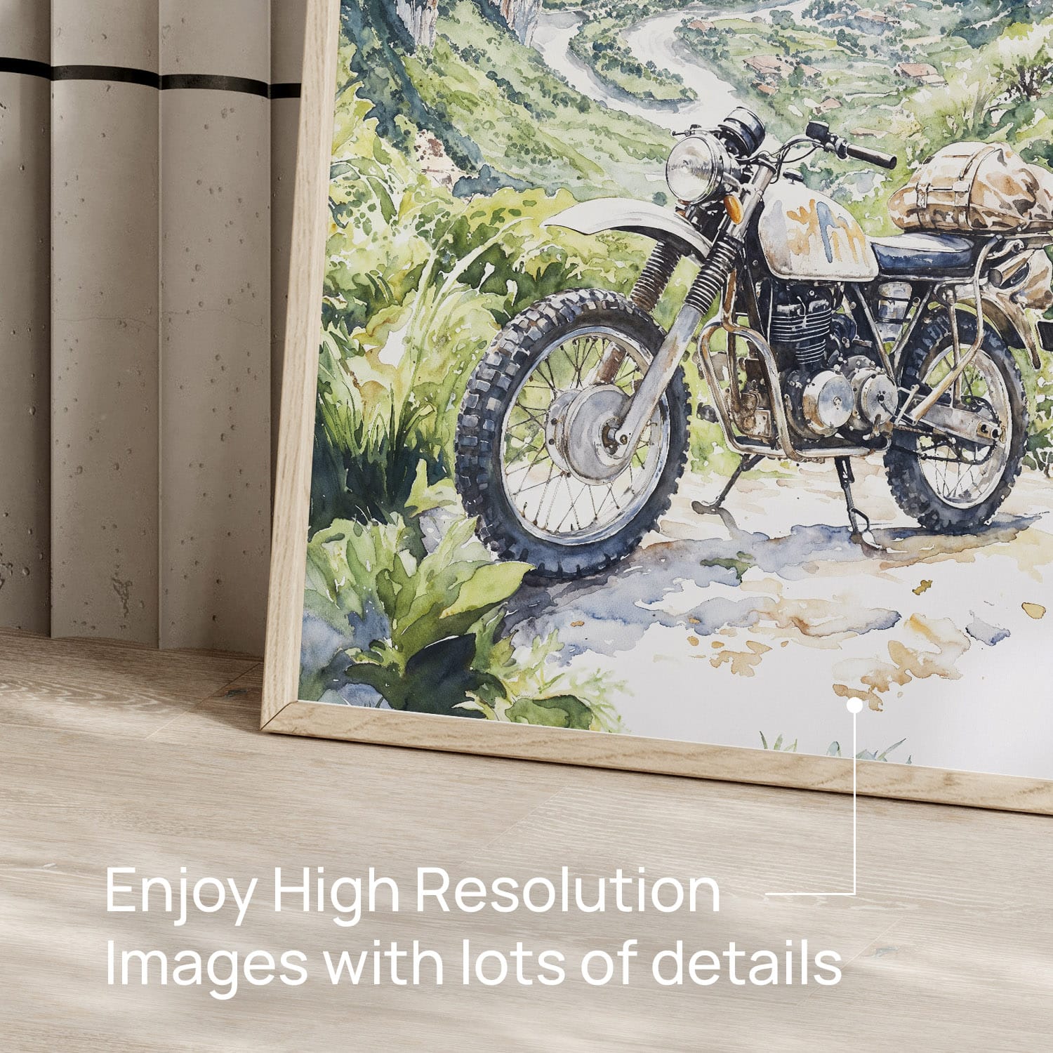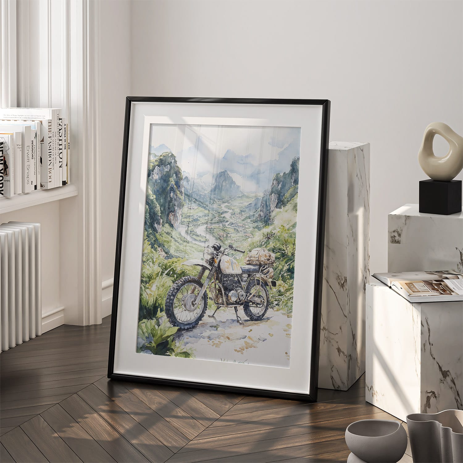 Bring the spirit of adventure to your home with this Ha Giang Loop digital download wall art. Featuring a scenic motorcycle against lush mountains, it’s perfect for instant printing to enhance any space.