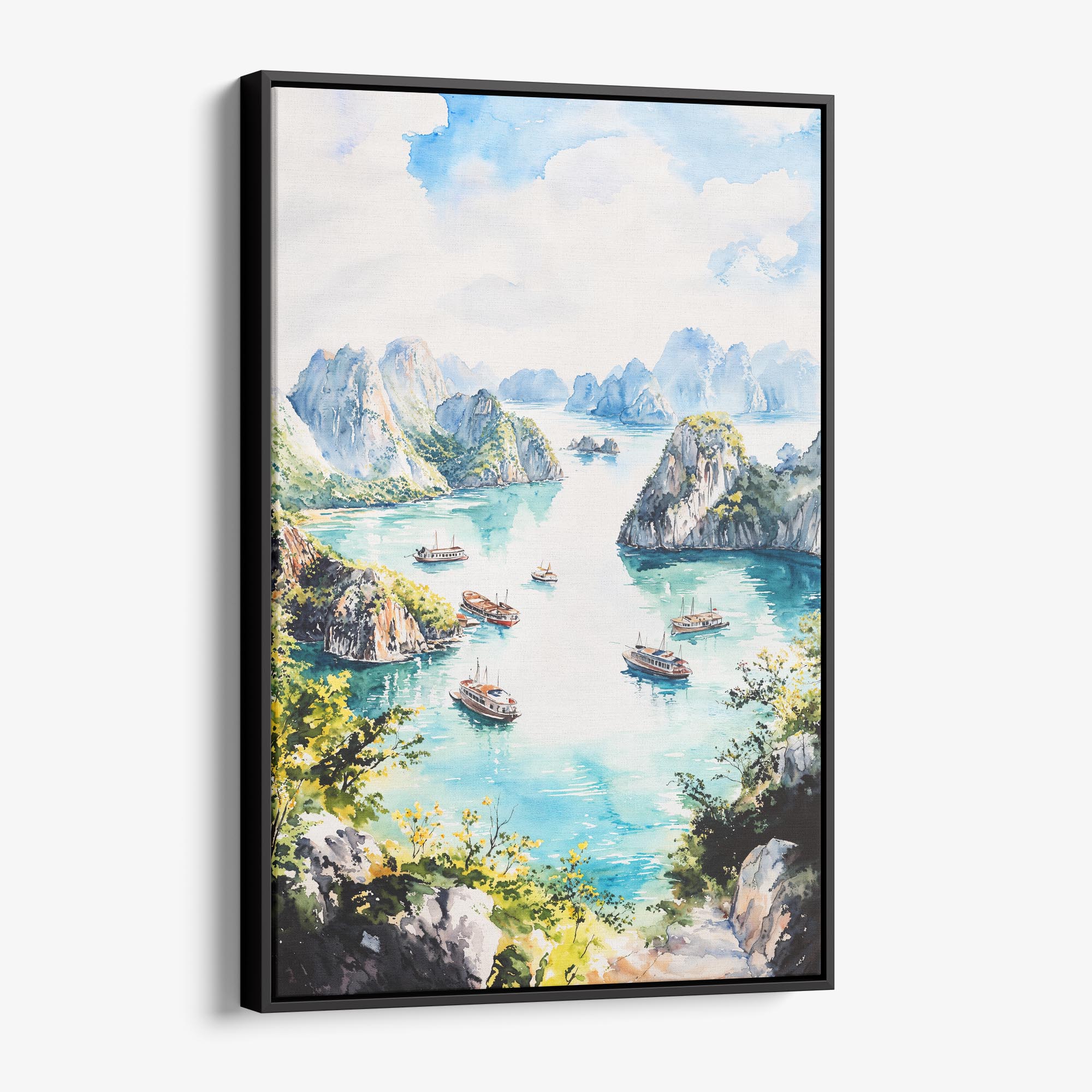 Ha Long Bay Vietnam Watercolor Canvas Print – Scenic Coastal Wall Art