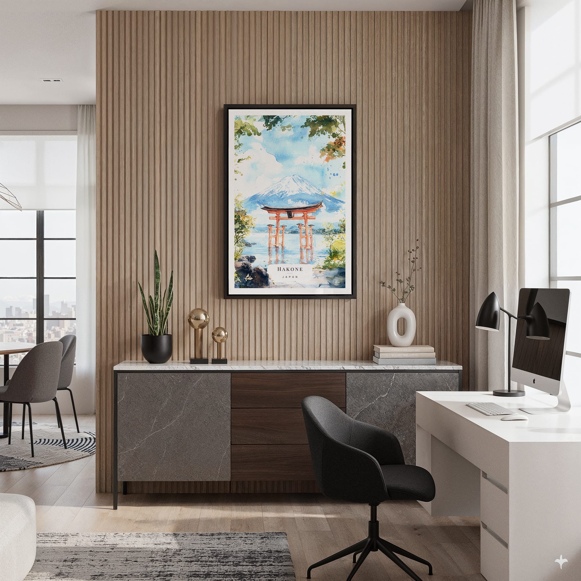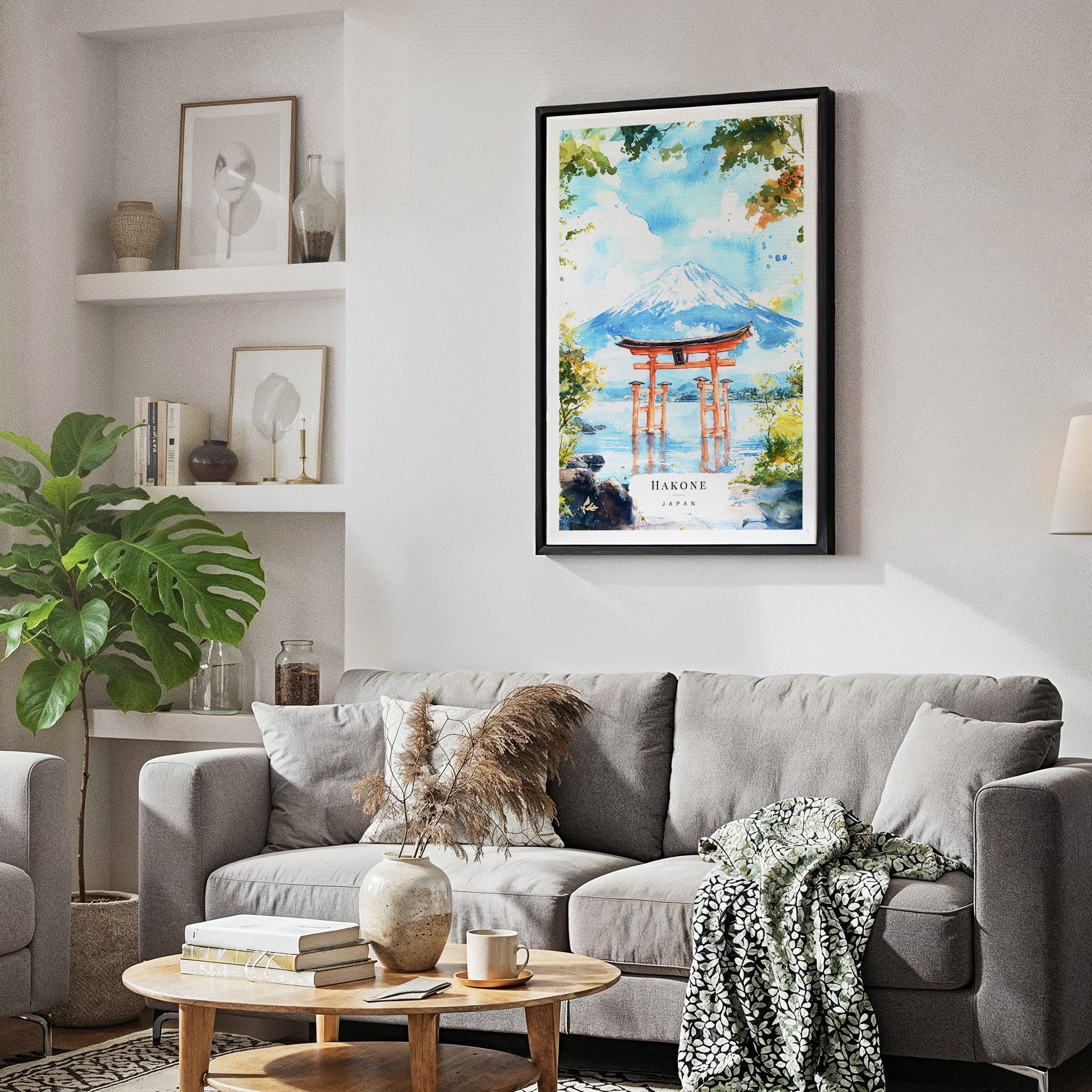 Hakone Gate Watercolor Canvas Print – Tranquil Japanese Landscape Wall Art