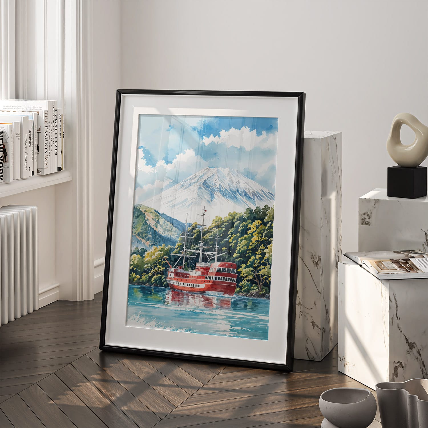 Hakone with Mount Fuji Watercolor Art – Digital Download Wall Art