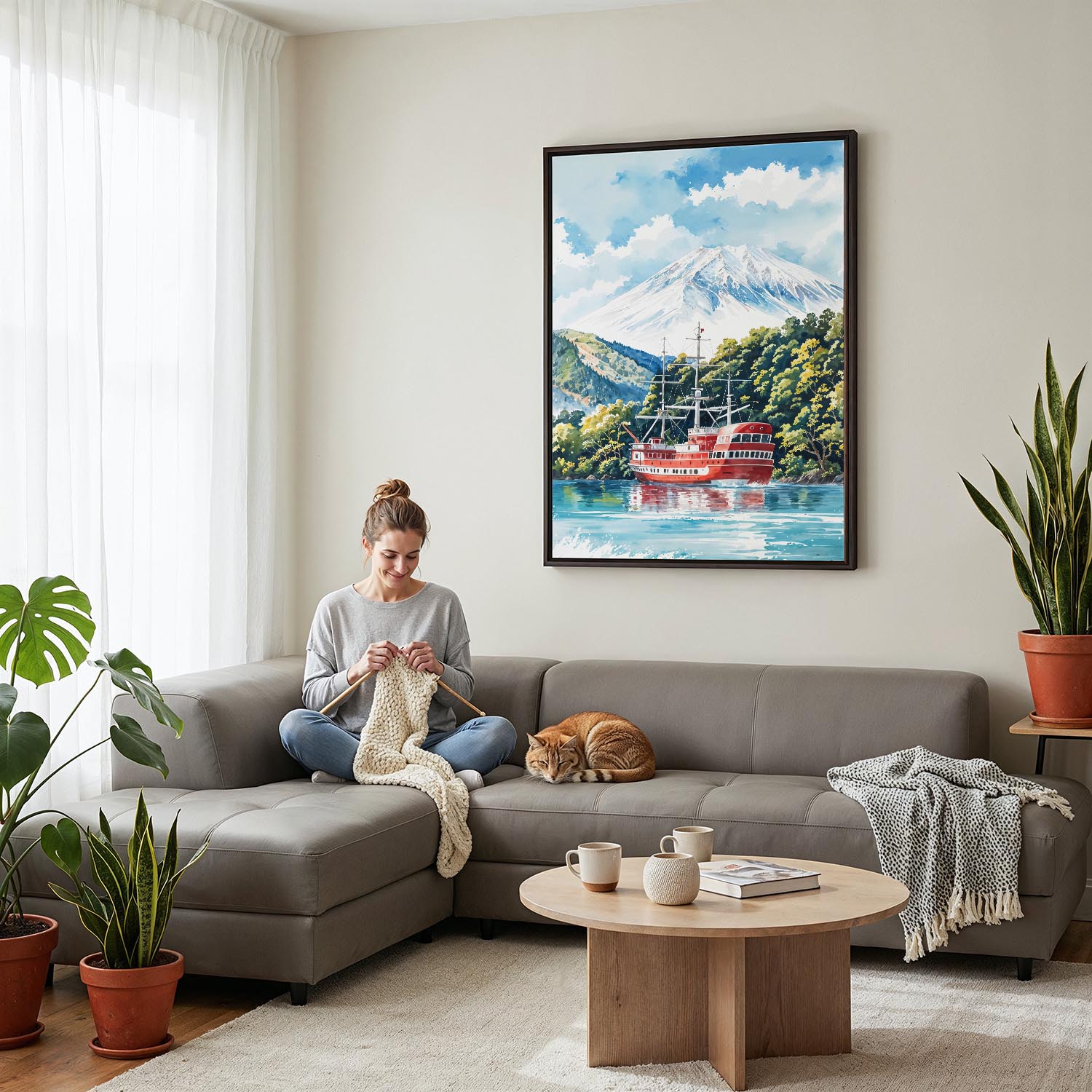 Bring the serene beauty of Hakone into your home with this canvas print featuring Mount Fuji. Ready to hang, it adds a calm touch to any room, whether in your living room, office, or bedroom.